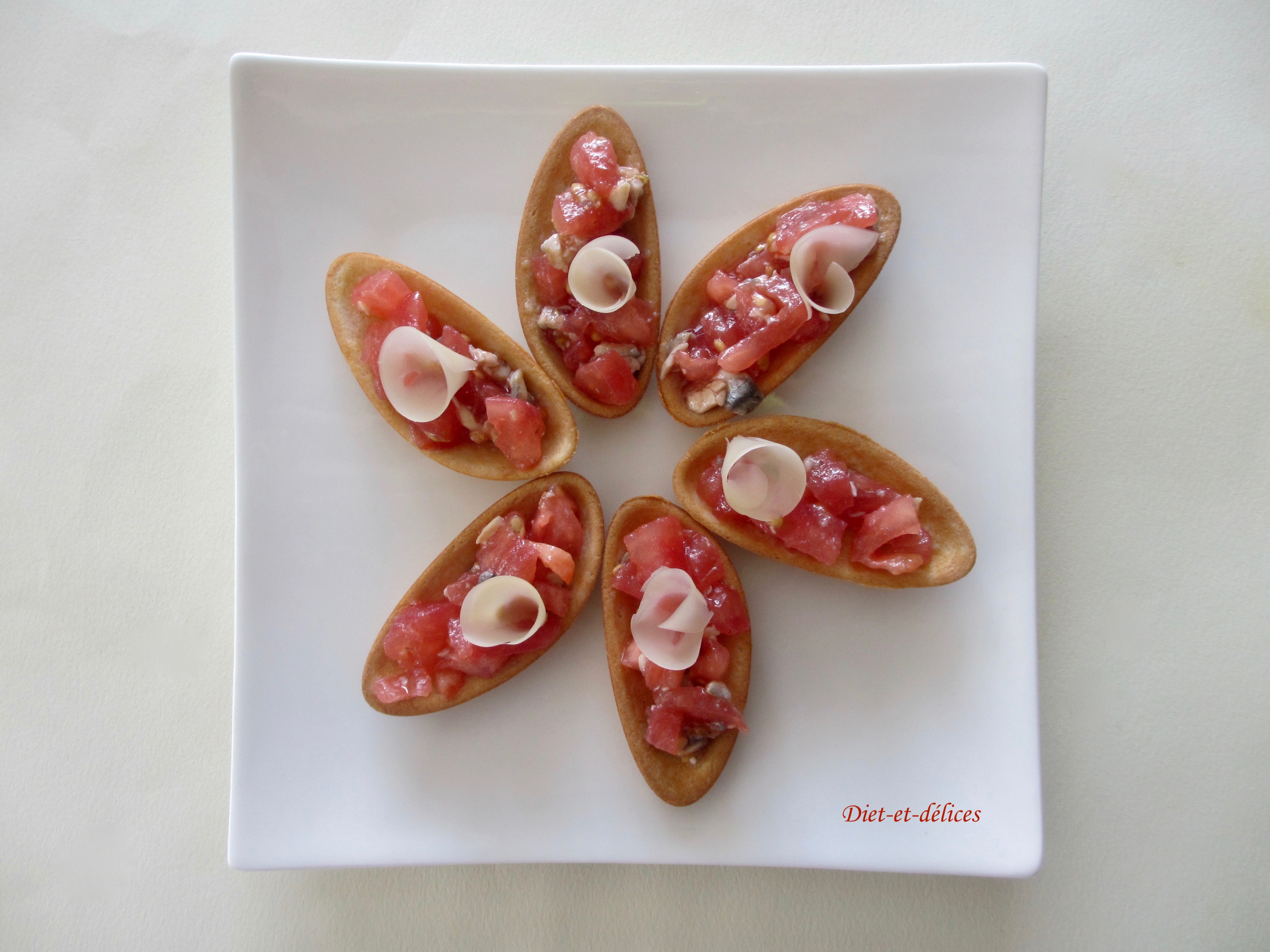 - Mélanger dans un bol la tomate égouttée, les anchois, l’huile d’olive, et le poivre.
