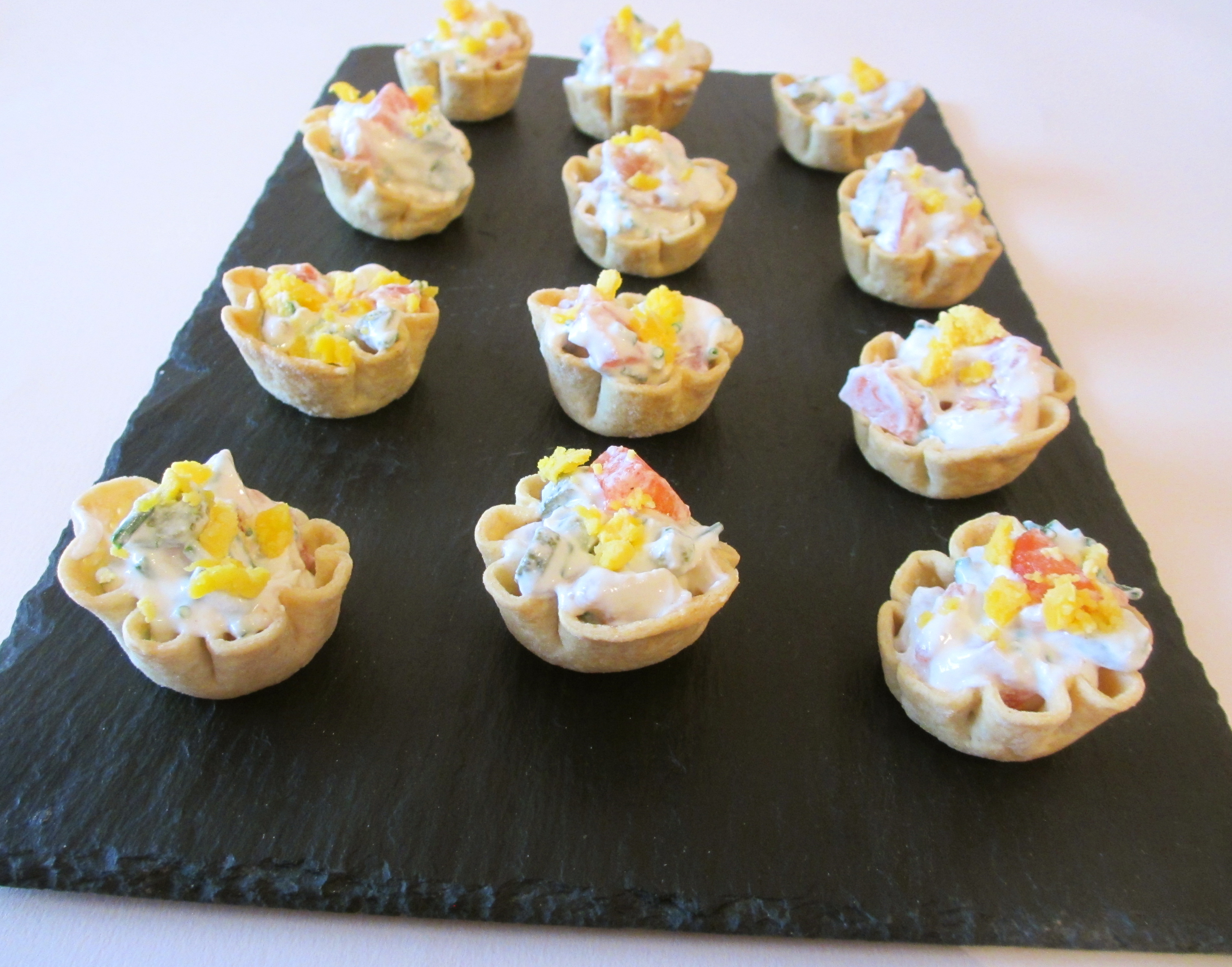 corolles, apéritif, bouchée apéritive, corolles apéritives, apéro,bouchée, corolles au jambon fumé,jambon fumé, cornichons, tomate, fromage blanc, farce, garniture, sauce, sauce au fromage blanc