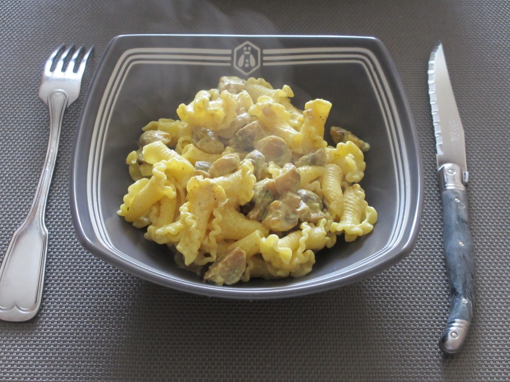 pâtes, pâtes au champignons, champignons, corolles, corolles aux champignons, ral el hanout, échalote, pasta,fromage frais