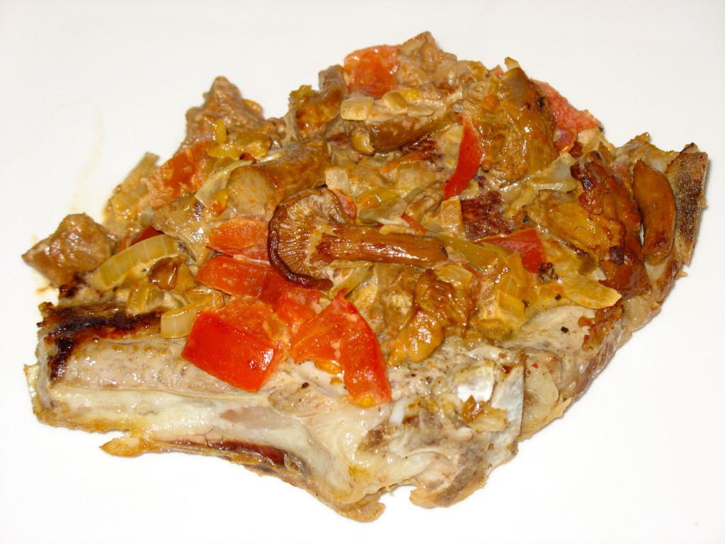 - Disposer les côtes sur un morceau de papier aluminium. Les recouvrir du mélange à base de champignons.