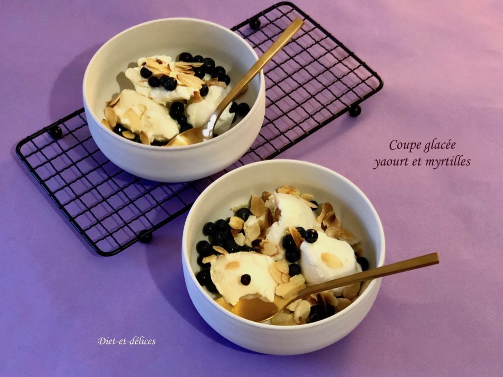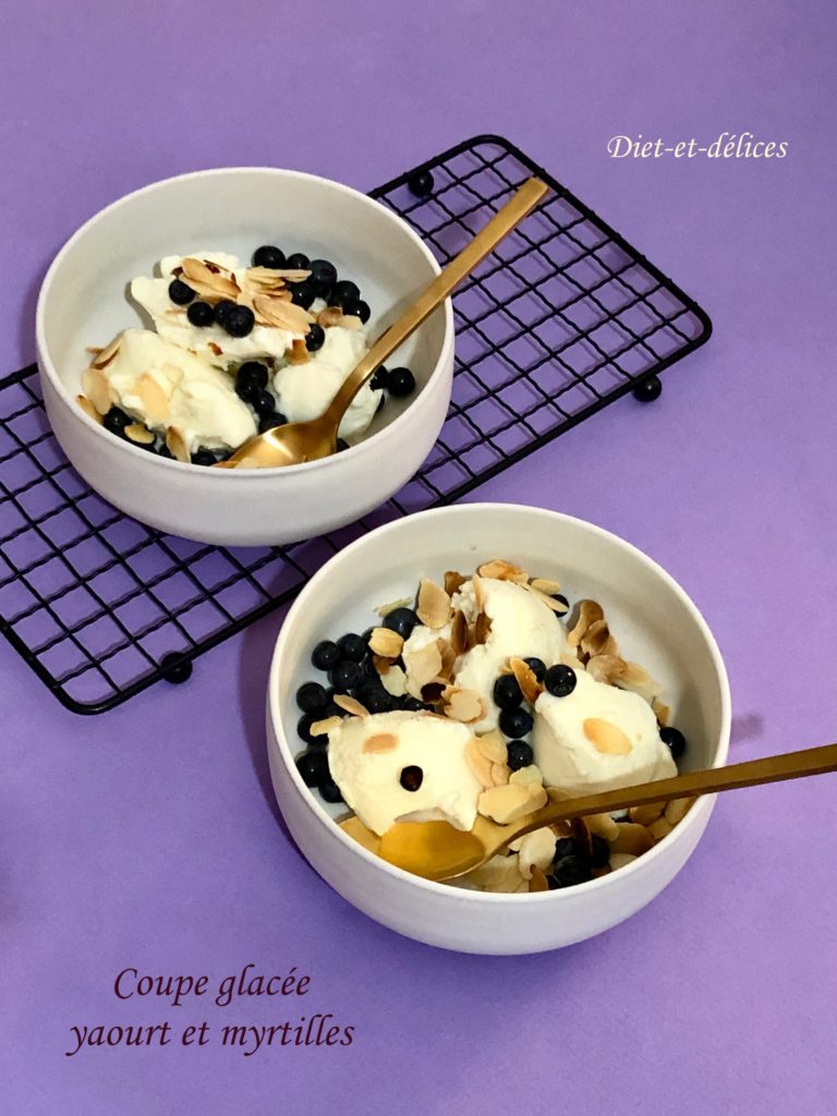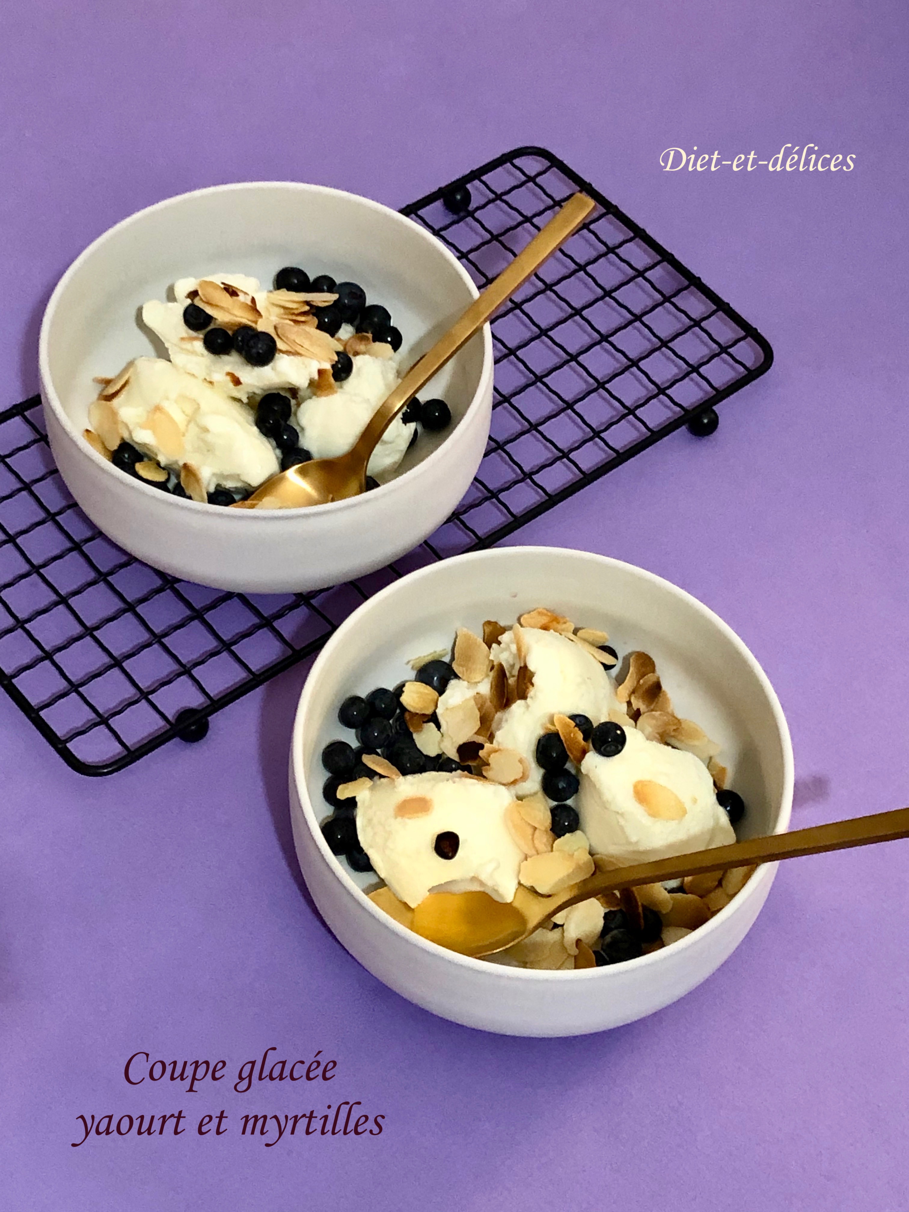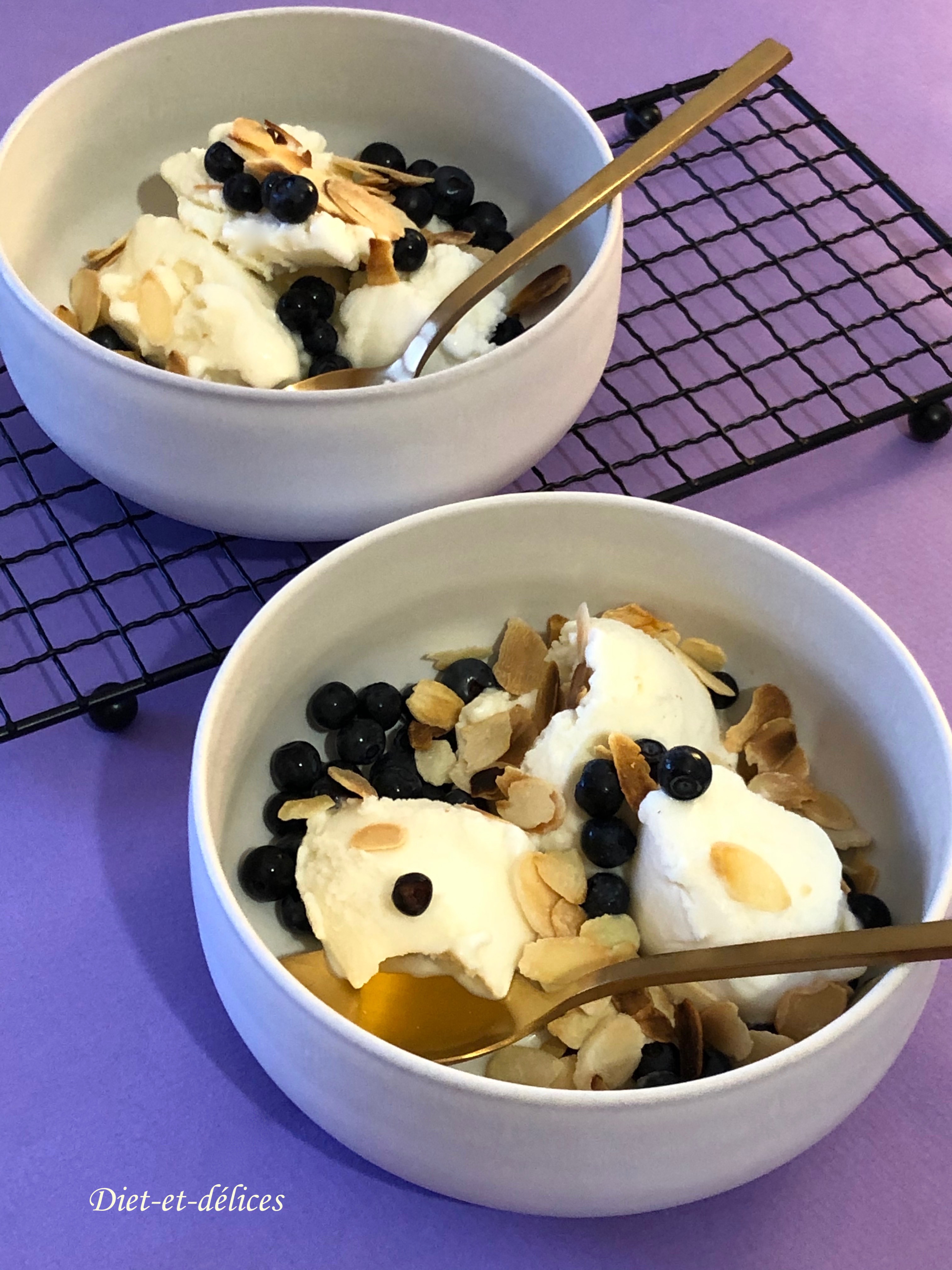 glace, glace au yaourt, coupe glacée, dessert, myrtilles, amandes, glace, glace au yaourt, coupe glacée, dessert, myrtilles, amandes