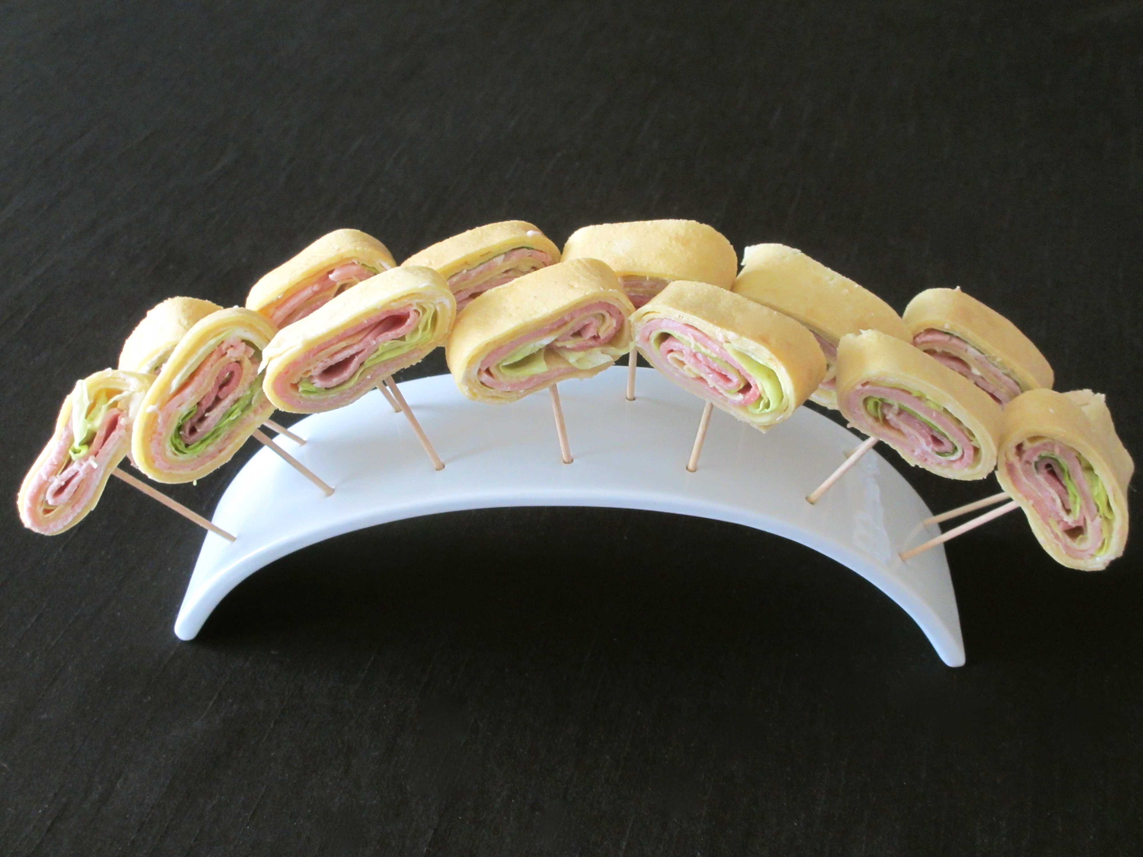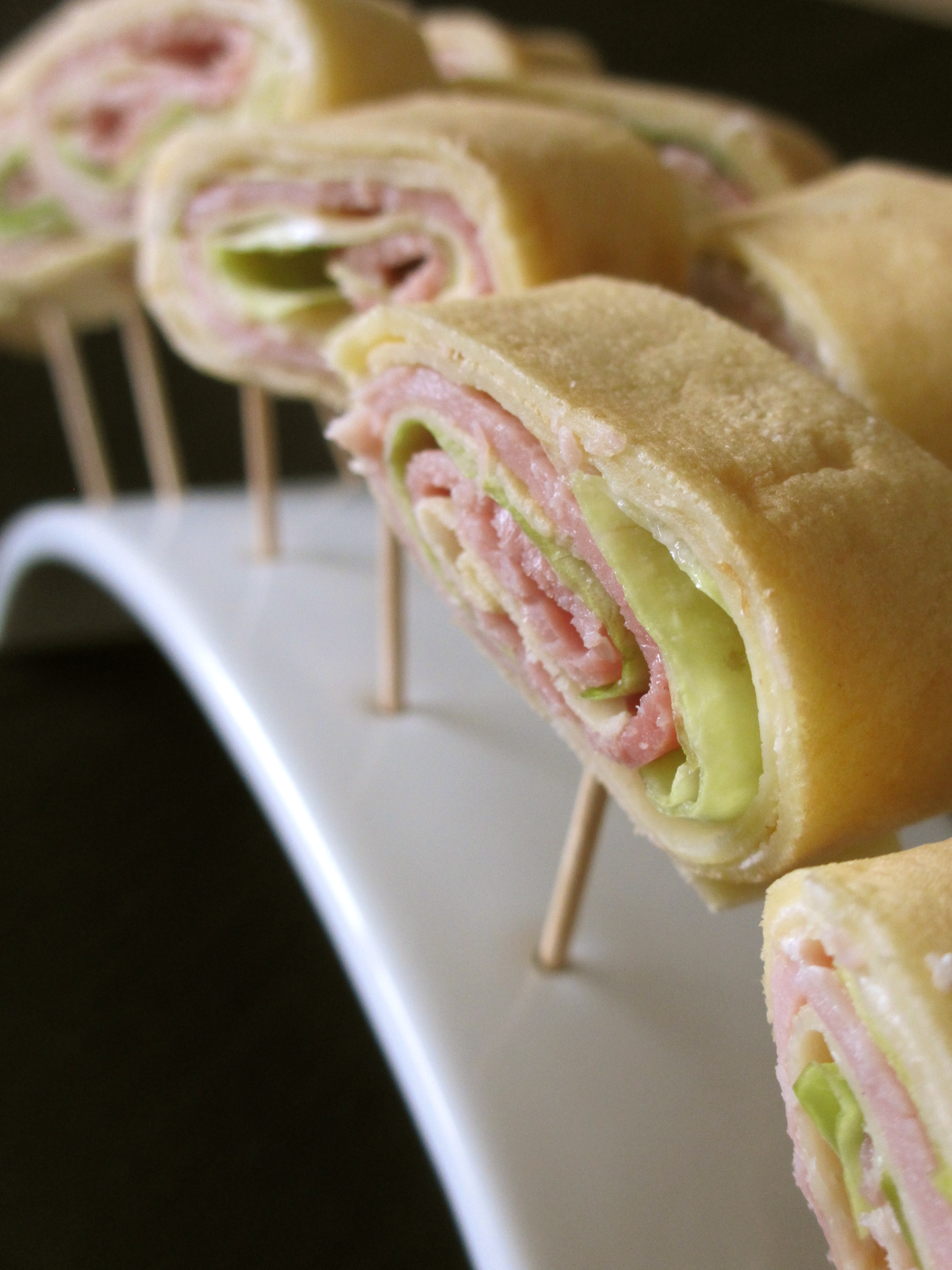 crêpes, crêpes roulées, apéritif, crêpes au jambon, crêpes roulées au jambon, apéro, laitue, fromage blanc, bouchée, bouchée apéritive, roulé,ciboulette
