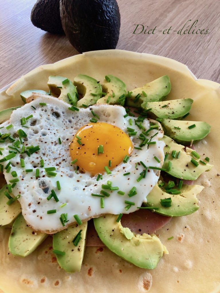 crêpes, jambon cuit, avocat, oeuf, oeuf au plat, plat complet