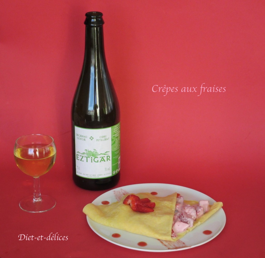 crêpes, fraises, crêpes aux fraises, fromage blanc, chocolat, pépites de chocolat, coulis de fraises, dessert, goûter
