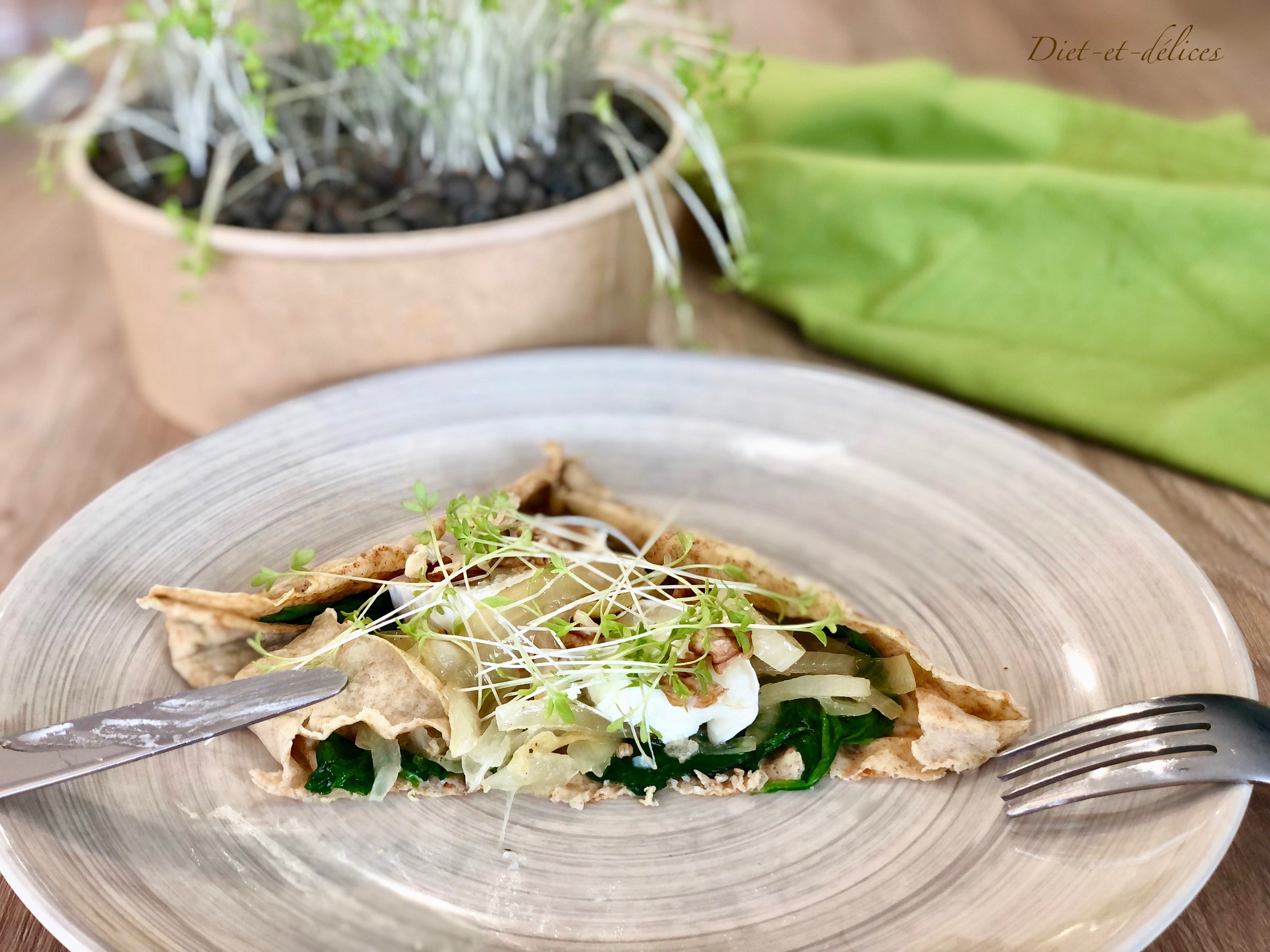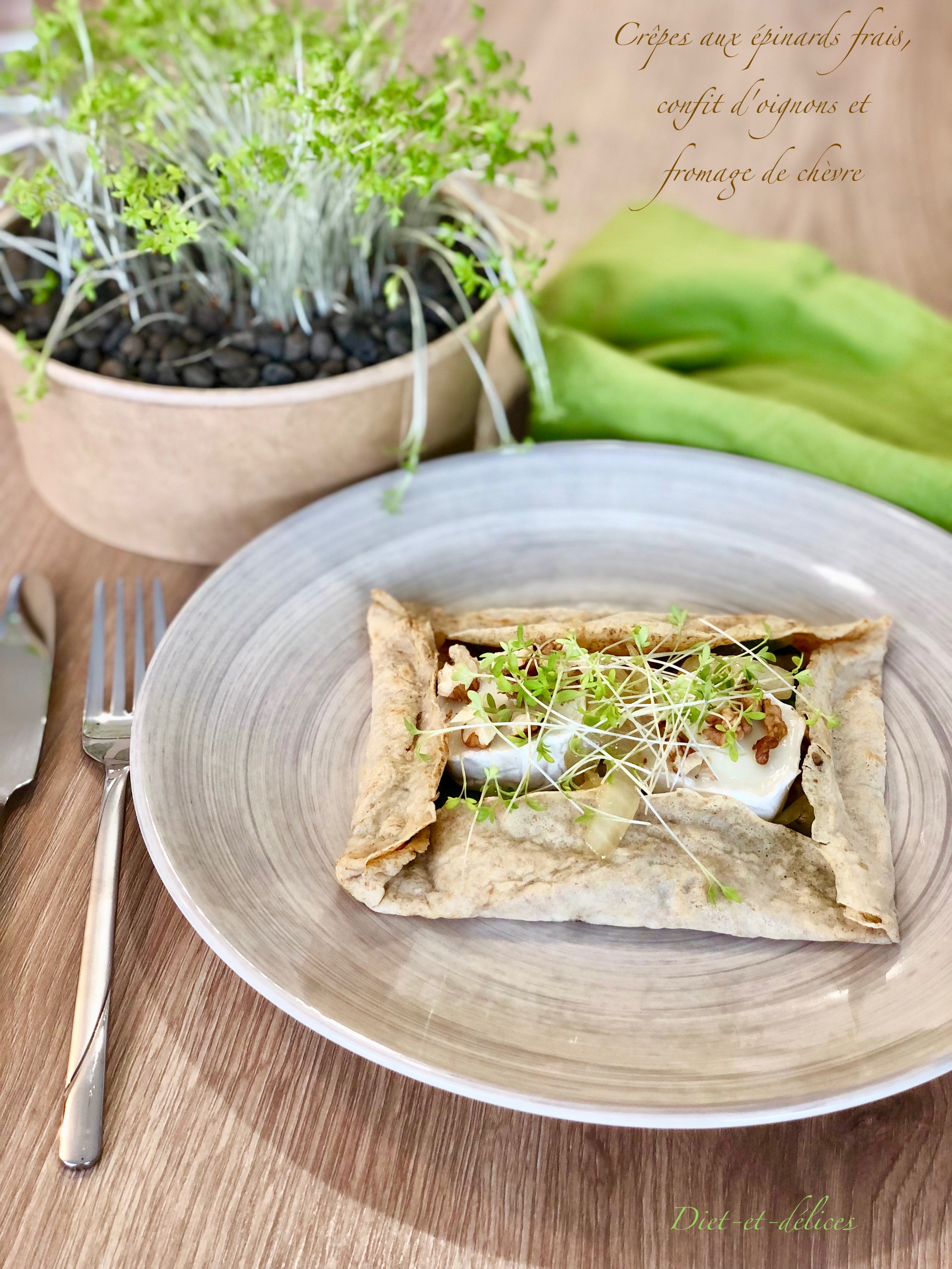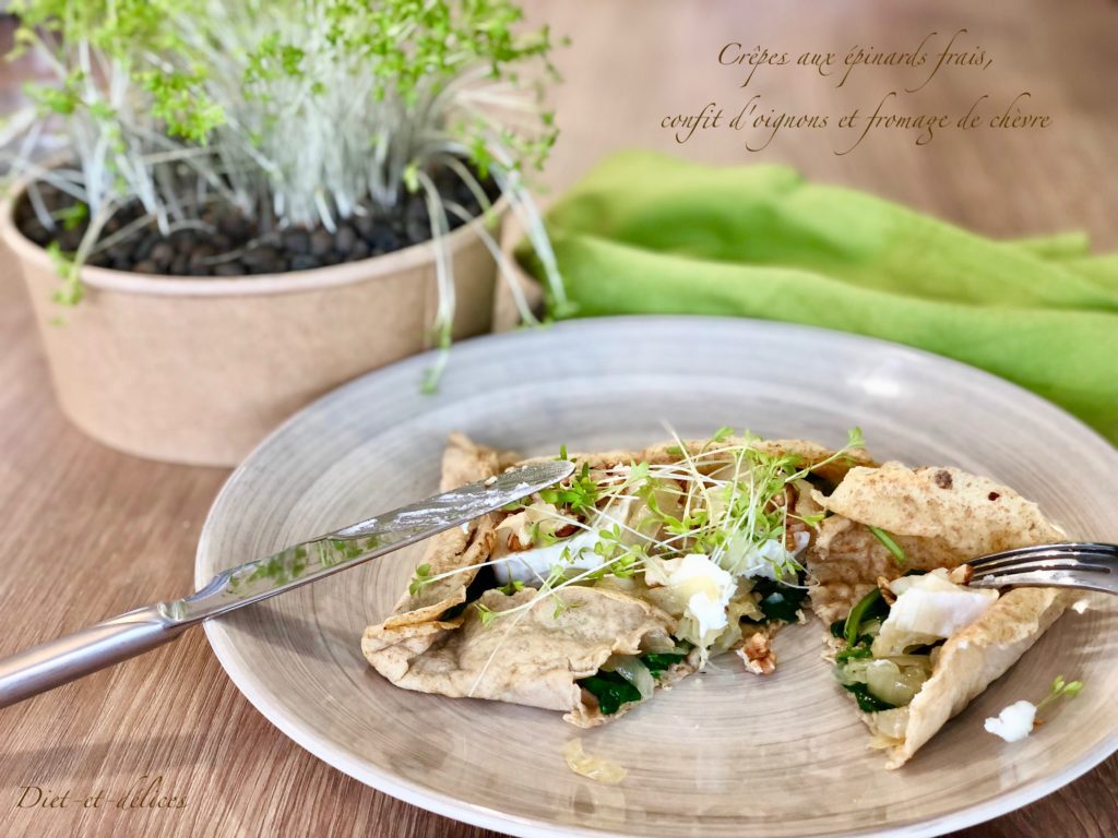 crêpes, épinards, chèvre, crêpes salées, fromage de chèvre, confit d’oignons