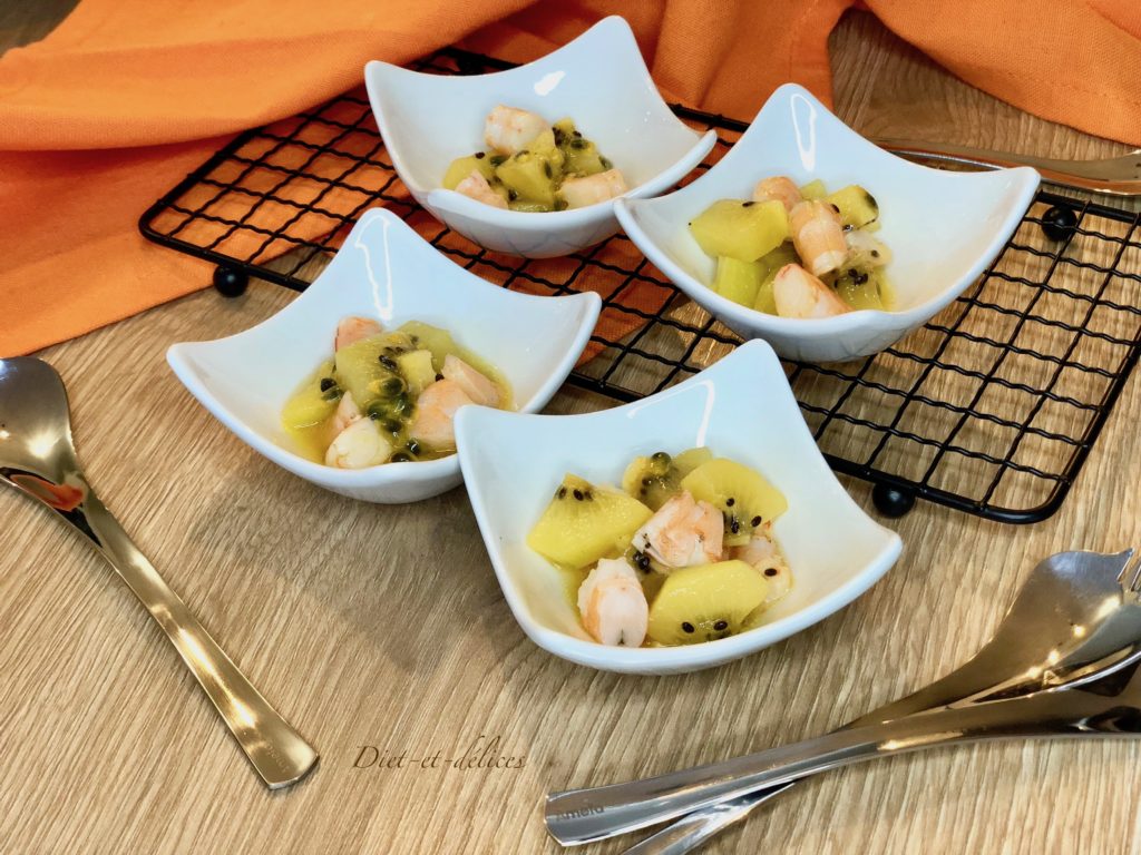crevettes, fruit de la passion, kiwi, apéro, apéritif, kiwi gold