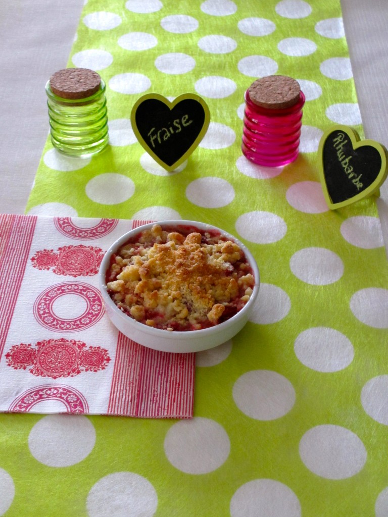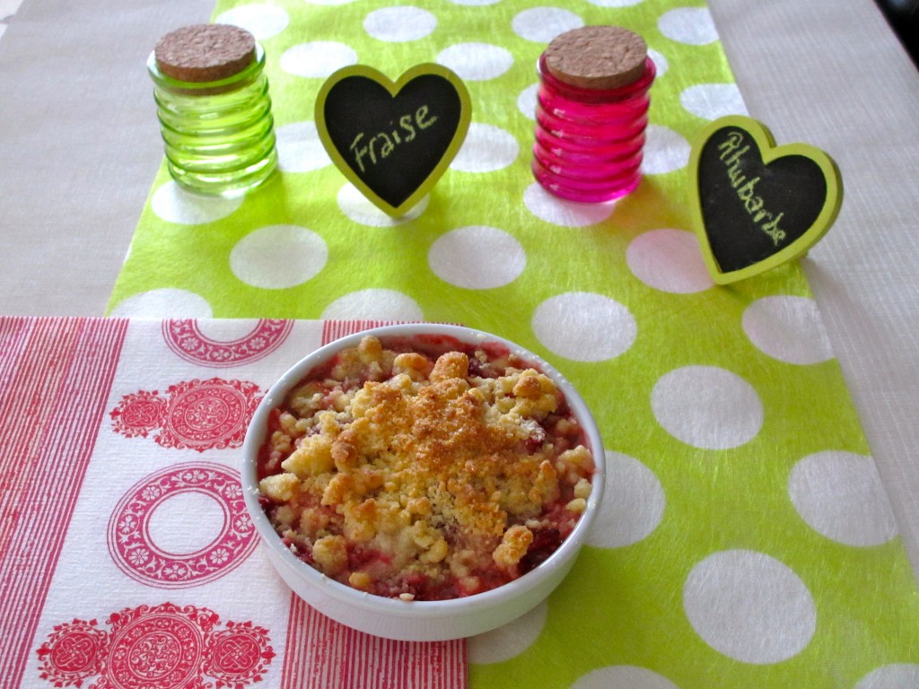 crumble, rhubarbe, fraise, crumble à la rhubarbe, crumble fraise, crumble fraise rhubarbedessert, amandes en poudre, amande