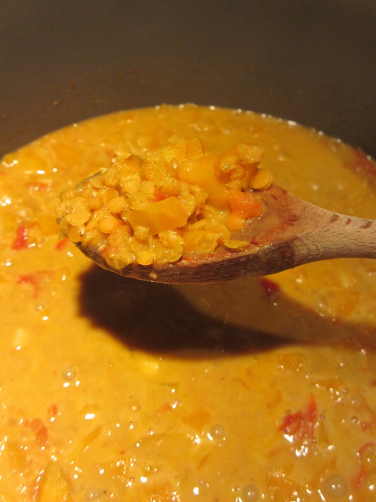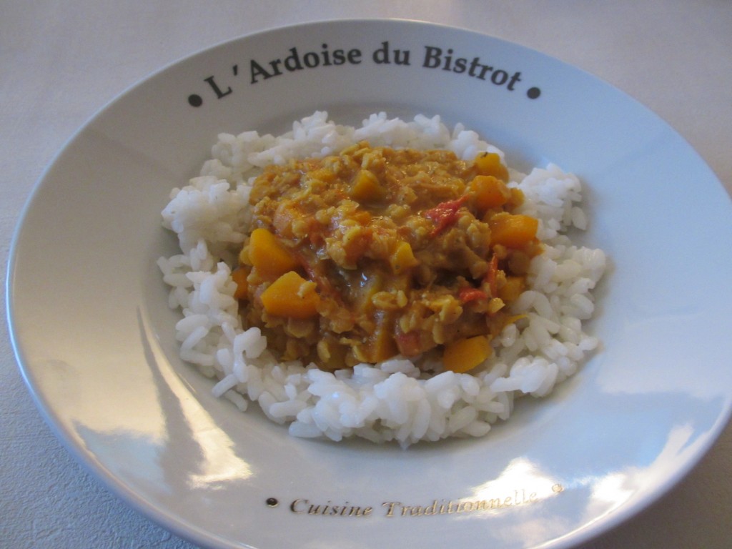 dahl, dahl de lentilles corail, lentilles, lentilles corail, plat indien, épices végétarien, colombo,cumin, gingembre, ail, riz plat complet, diététique, tomates, carottes, lait de coco, inde