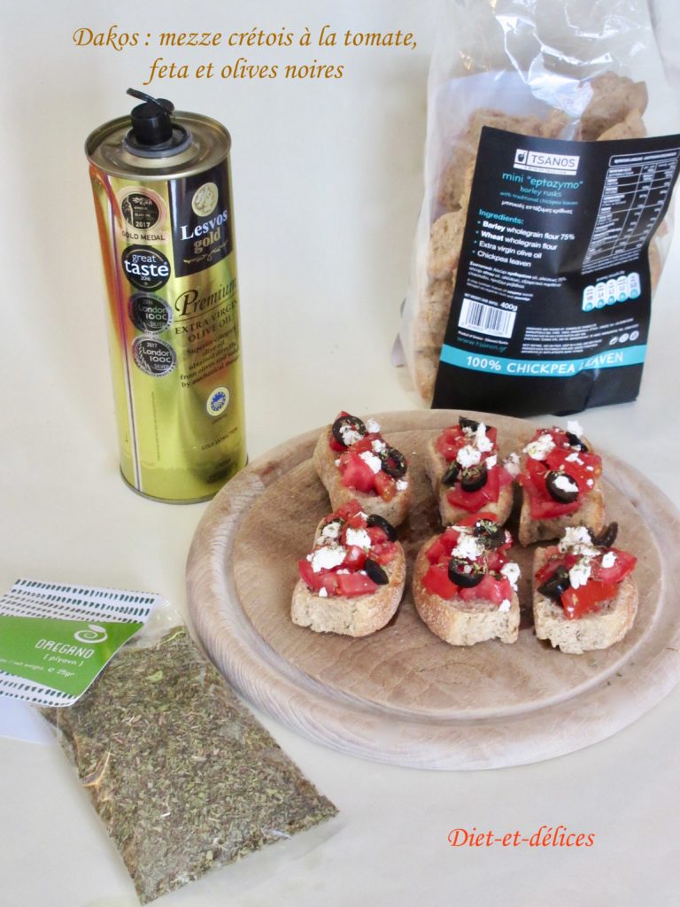 apéro, apéritif, dakos, cuisine grecque, tomate, feta, olives, origan