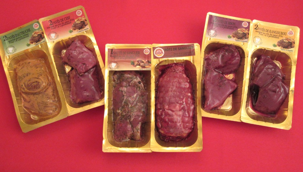 - Le gibier exotique: autruche, bison, renne, antilope et kangourou.