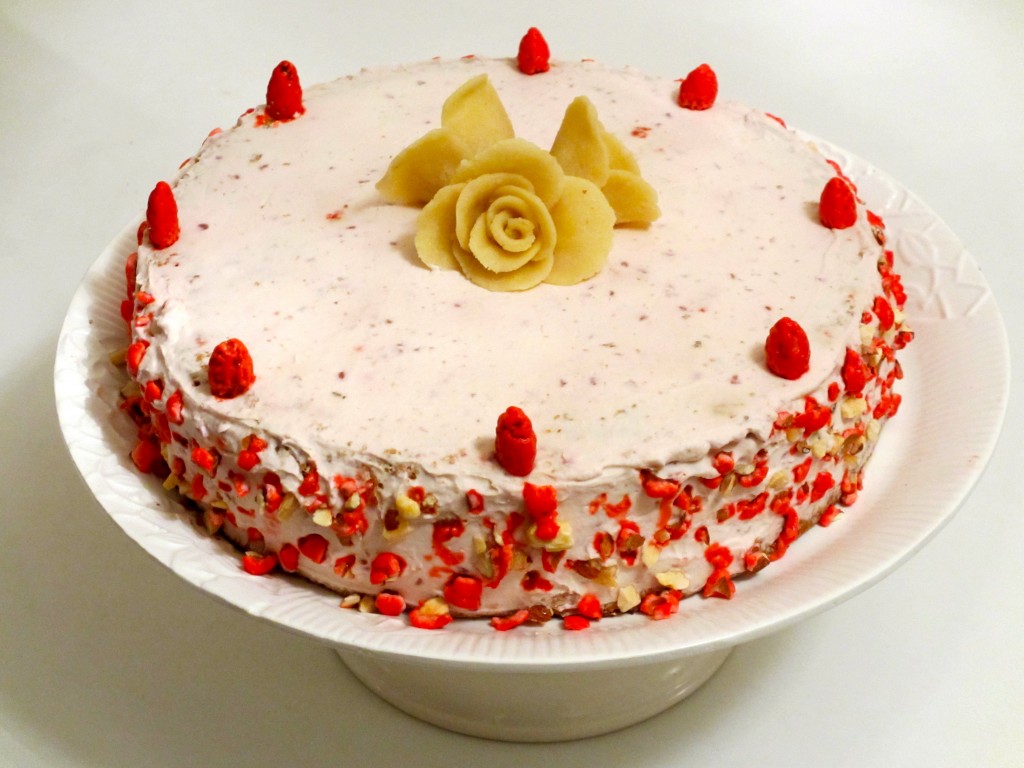 entremet, entremet aux pralines roses, pralines, pralines roses, mascarpone, gâteau , framboises, chantilly, chantilly framboises, pralines roses framboises, fruits rouges, génoise , ganache, ganache chocolat, chocolat, dessert, pâte d’amande, confiture de framboises