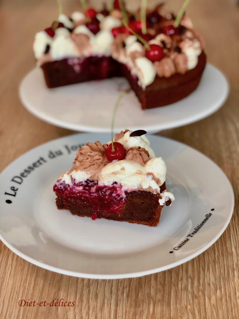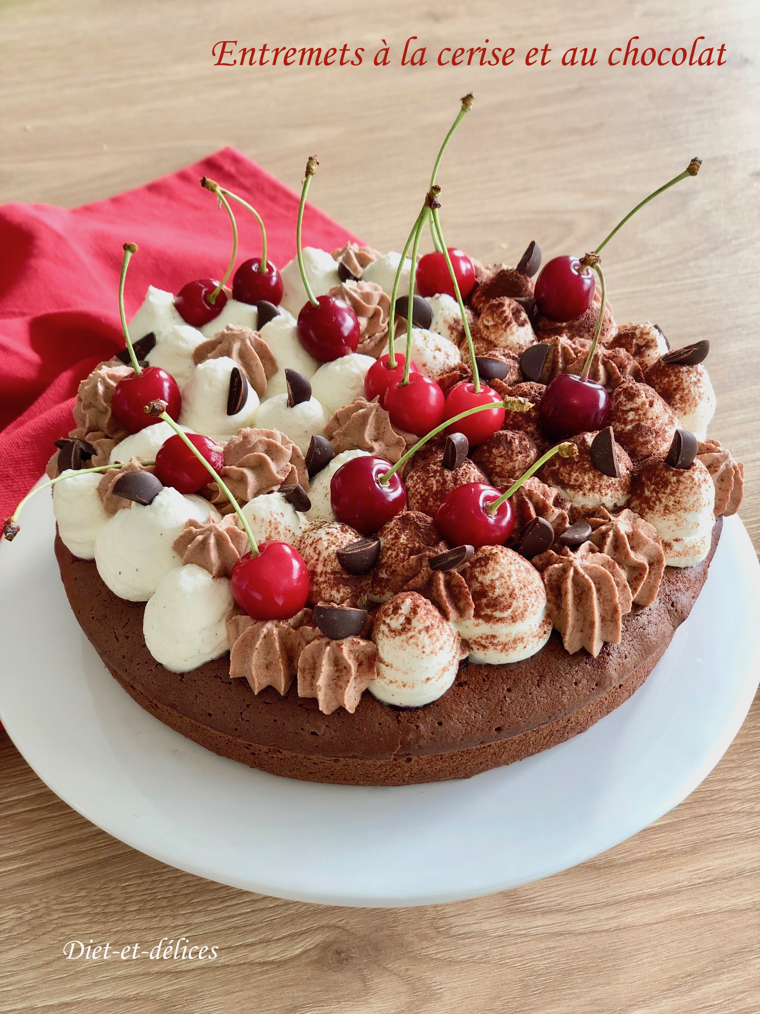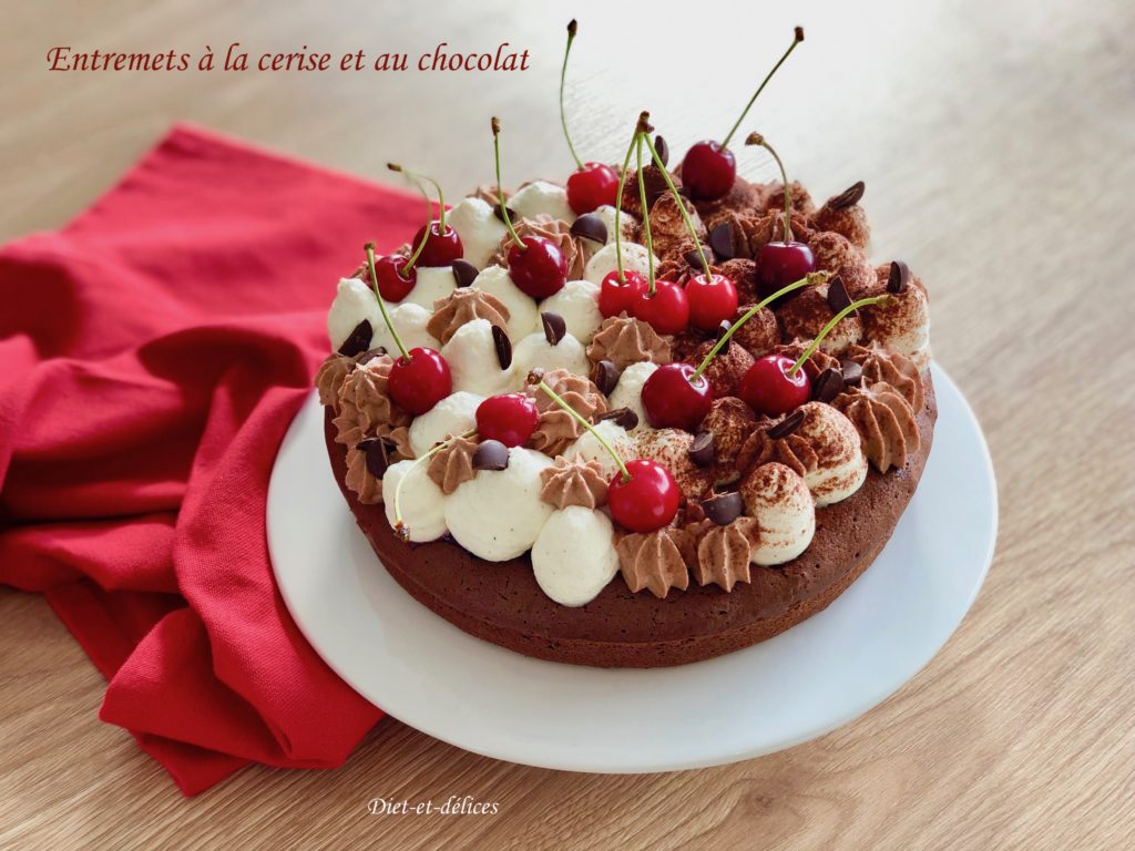 entremets, cerises, chocolat, chantilly, cacao, vanille, compotée de cerises, dessert
