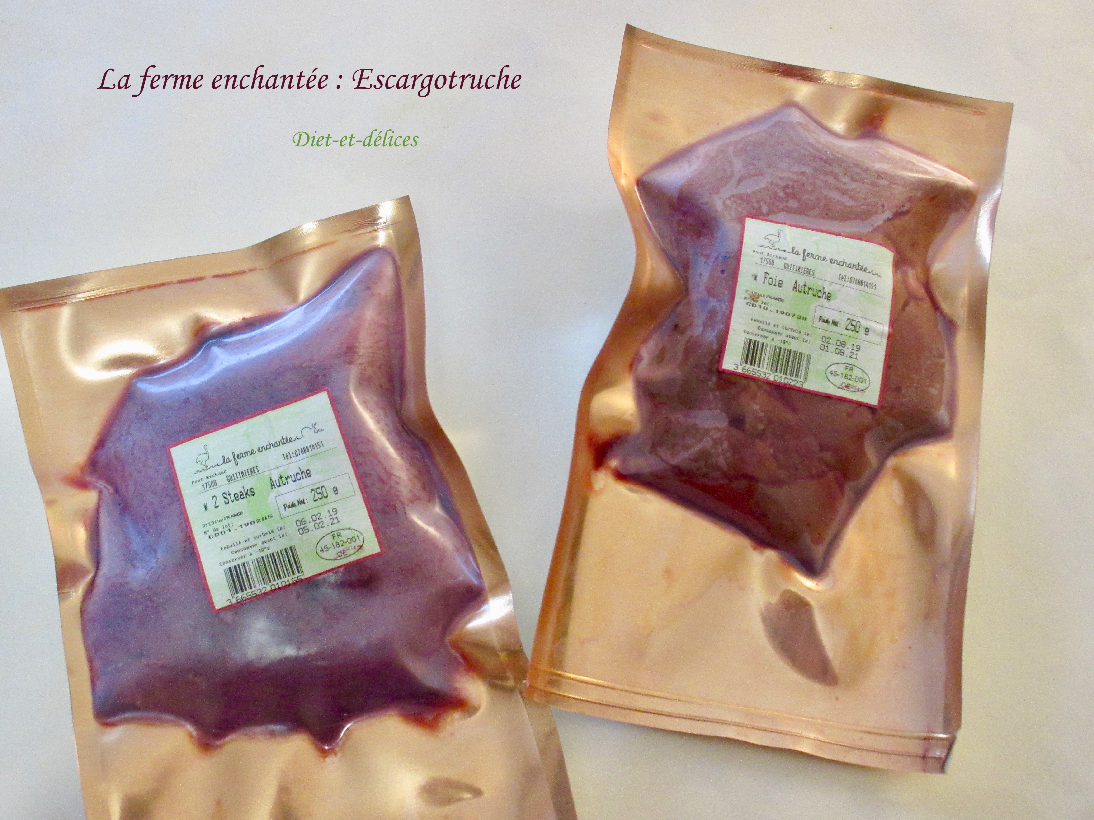 Je remercie la ferme enchantée Escargotruche ; j’ai eu le plaisir de recevoir des steaks d’autruche et des foies d’autruche.
