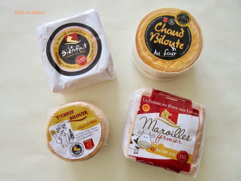 Je remercie grandement La Ferme du Pont des Loups. J’ai eu le plaisir de recevoir un Maroilles fermier au lait cru, le bienfait, chaud biloute et un t’chiot biloute affiné à la bière.