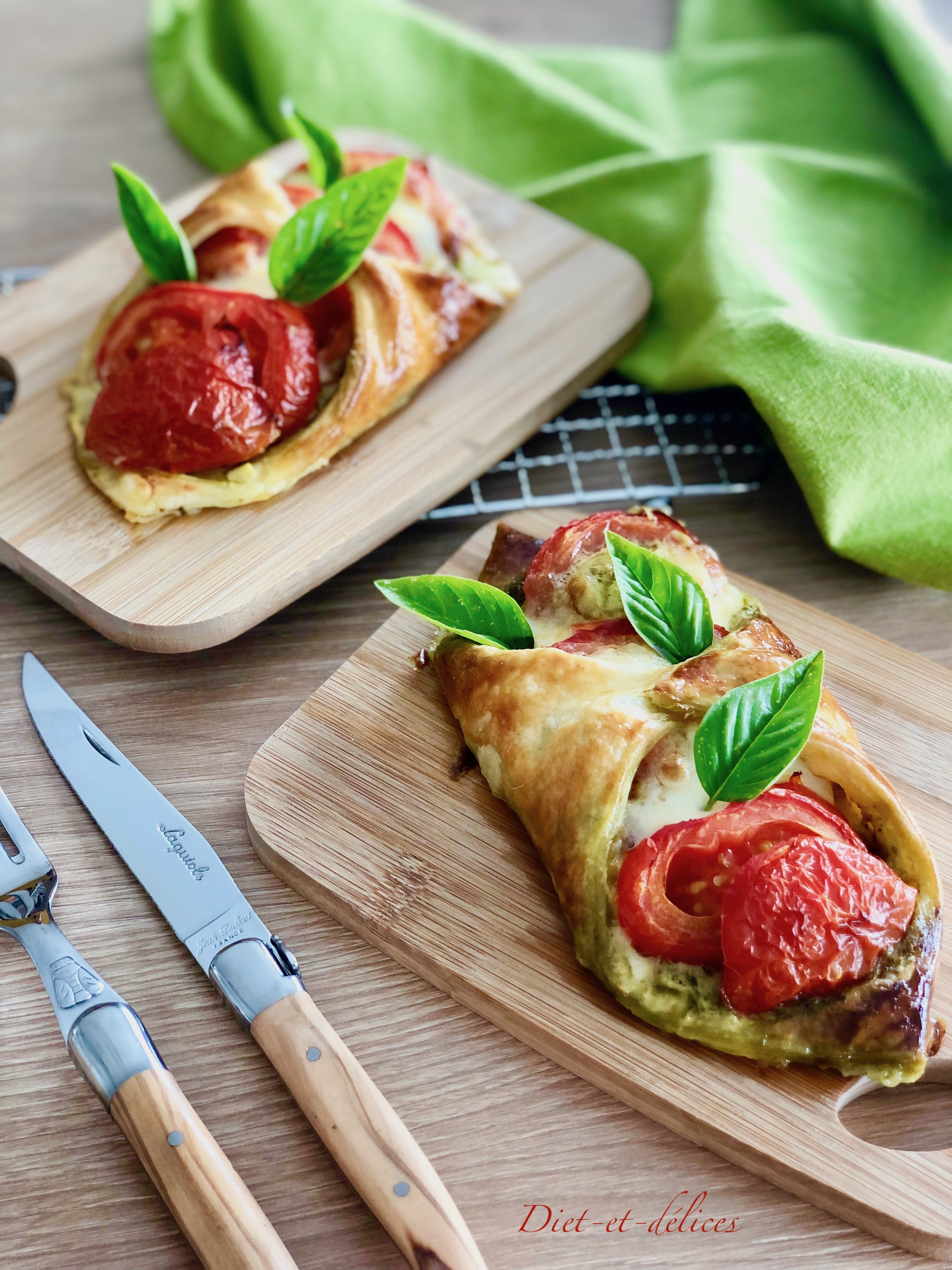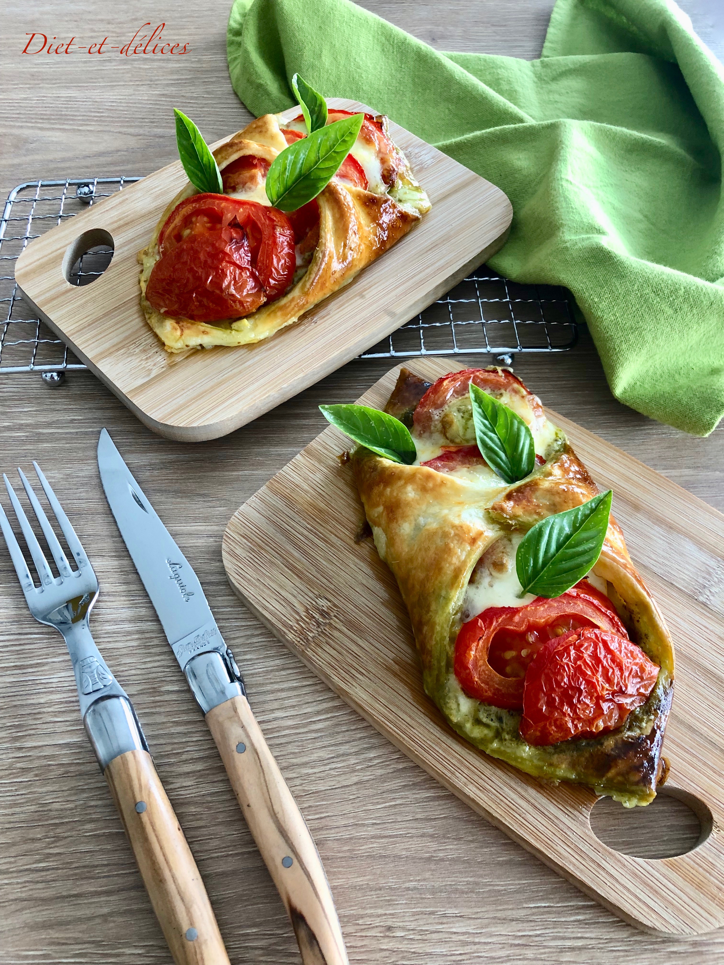 tomate, feuilleté, mozzarella, pesto, feuilleté tomate mozzarella, basilic