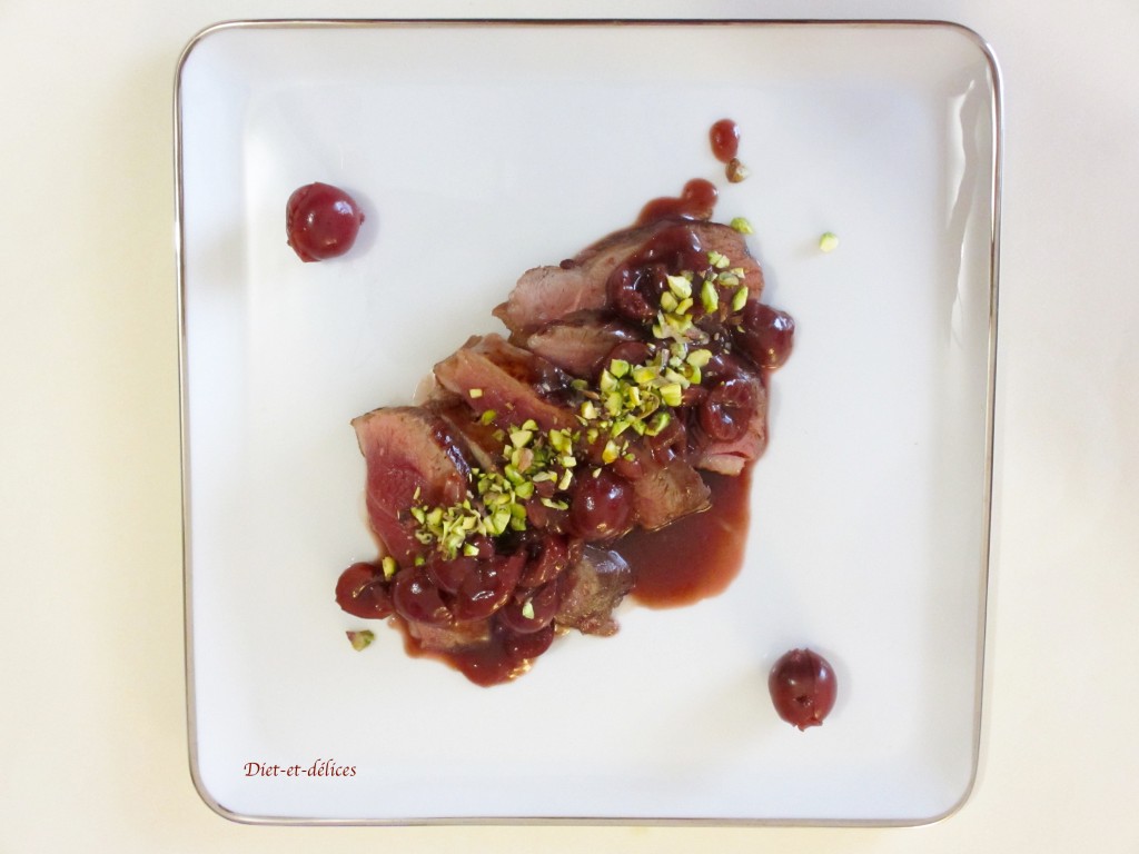 canard, magret, cerises, griottes, pistaches, sucré salé, filet, filet de canard