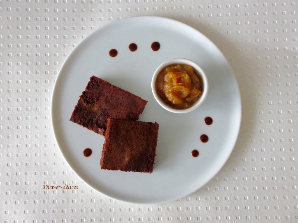 pas trop chocolaté : je n’aime pas quand le goût chocolat est trop fort et l’emporte ! la compote donne une saveur juste bien