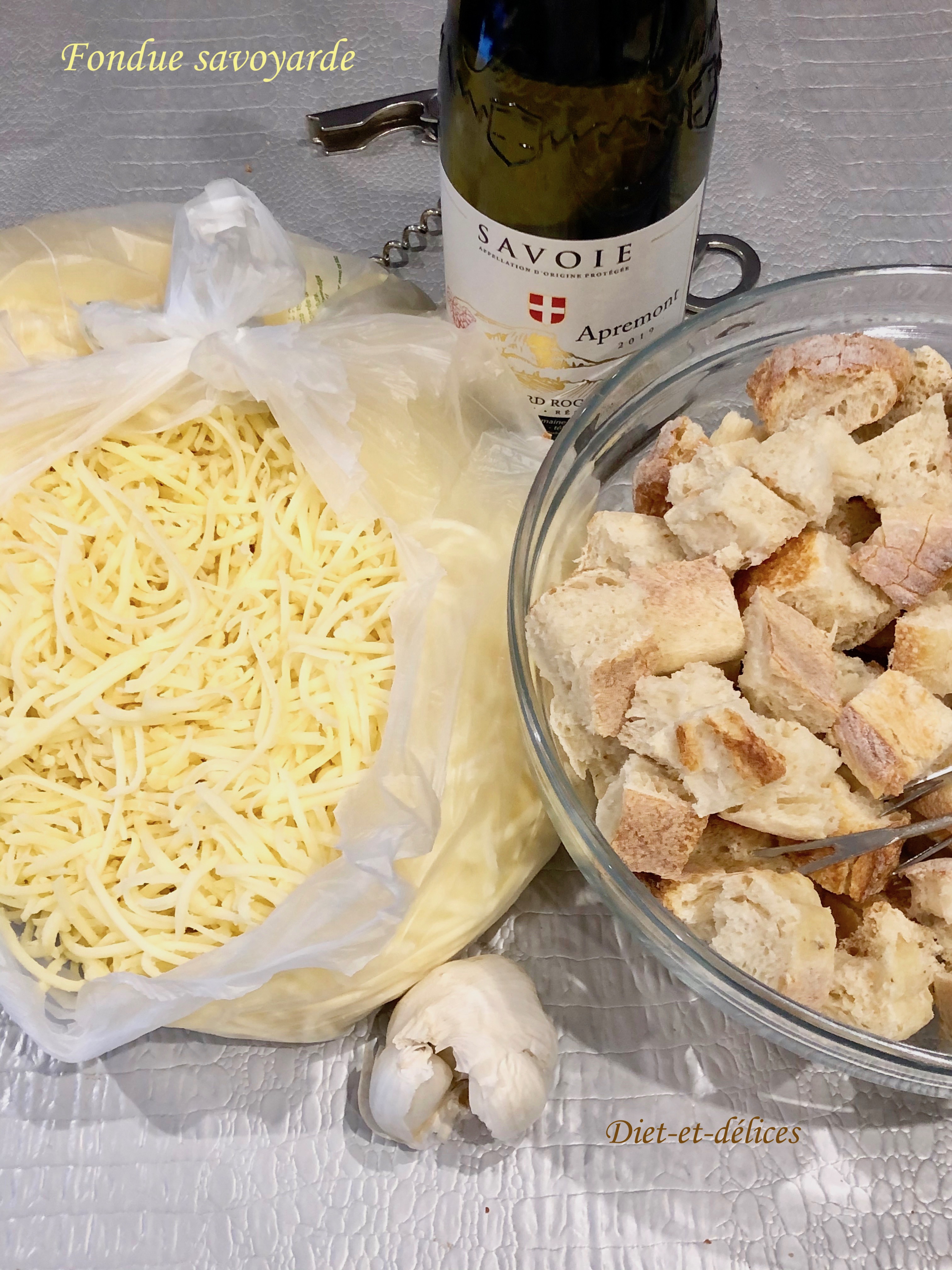 – La fondue étant particulièrement riche en calories et bourrative, il est intéressant de l’accompagner d’une salade verte ou de crudités. Elle s’accompagne aussi parfaitement d’un vin blanc de Savoie tel que de la Roussette de Savoie, du Chignin Bergeron ou de l’Apremont.