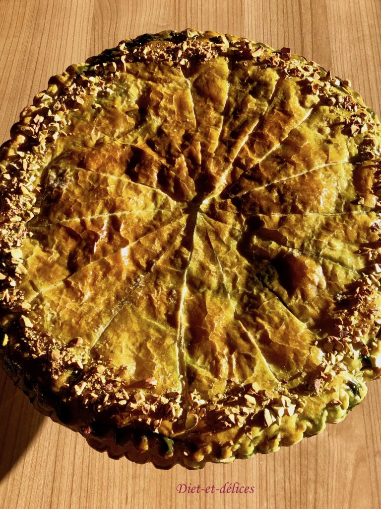 - Concasser les pistaches et les parsemer sur le tour de la galette.