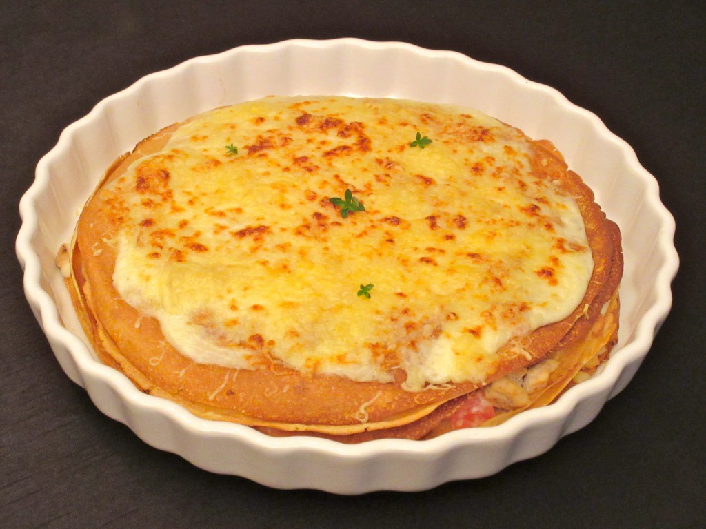 Accueil » Recettes » Plats complets » Gâteau de crêpes au poulet et béchamel allégée
