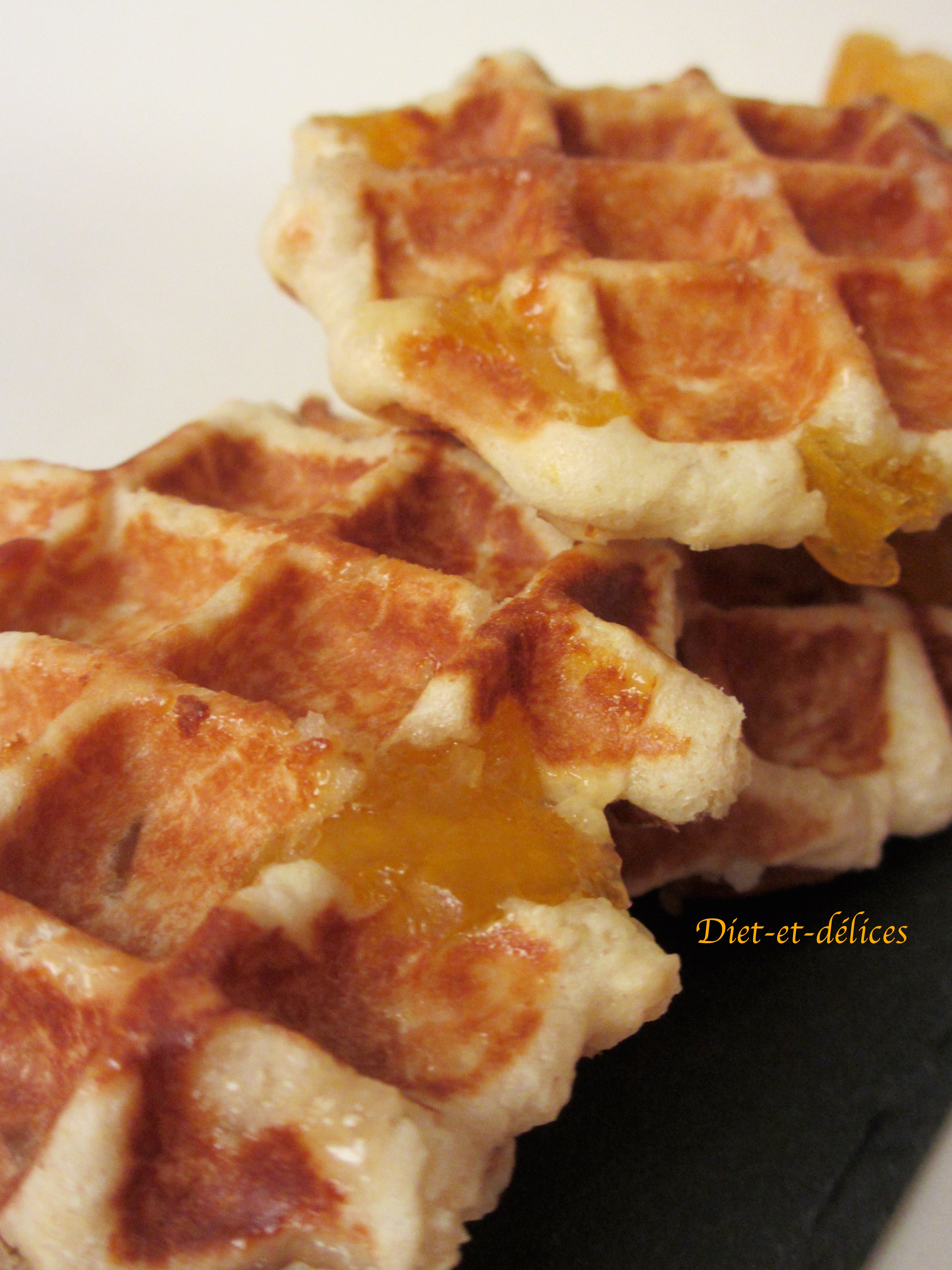 gaufres liégeoises, clémentines confites, fruits confits, gaufres liégeoises aux fruits confits, grand marnier, dessert, cuisine belge, végétarien, levure de boulanger