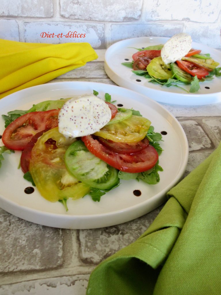 Accueil » Recettes » Légumes » Glace à la moutarde à l’ancienne sur son lit de tomates multicolores