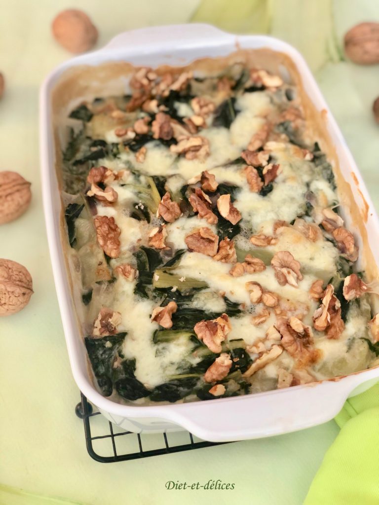 gratin, gratin de bettes, bettes, légumes, gratin de blettes, blettes, béchamel, noix, mozzarella