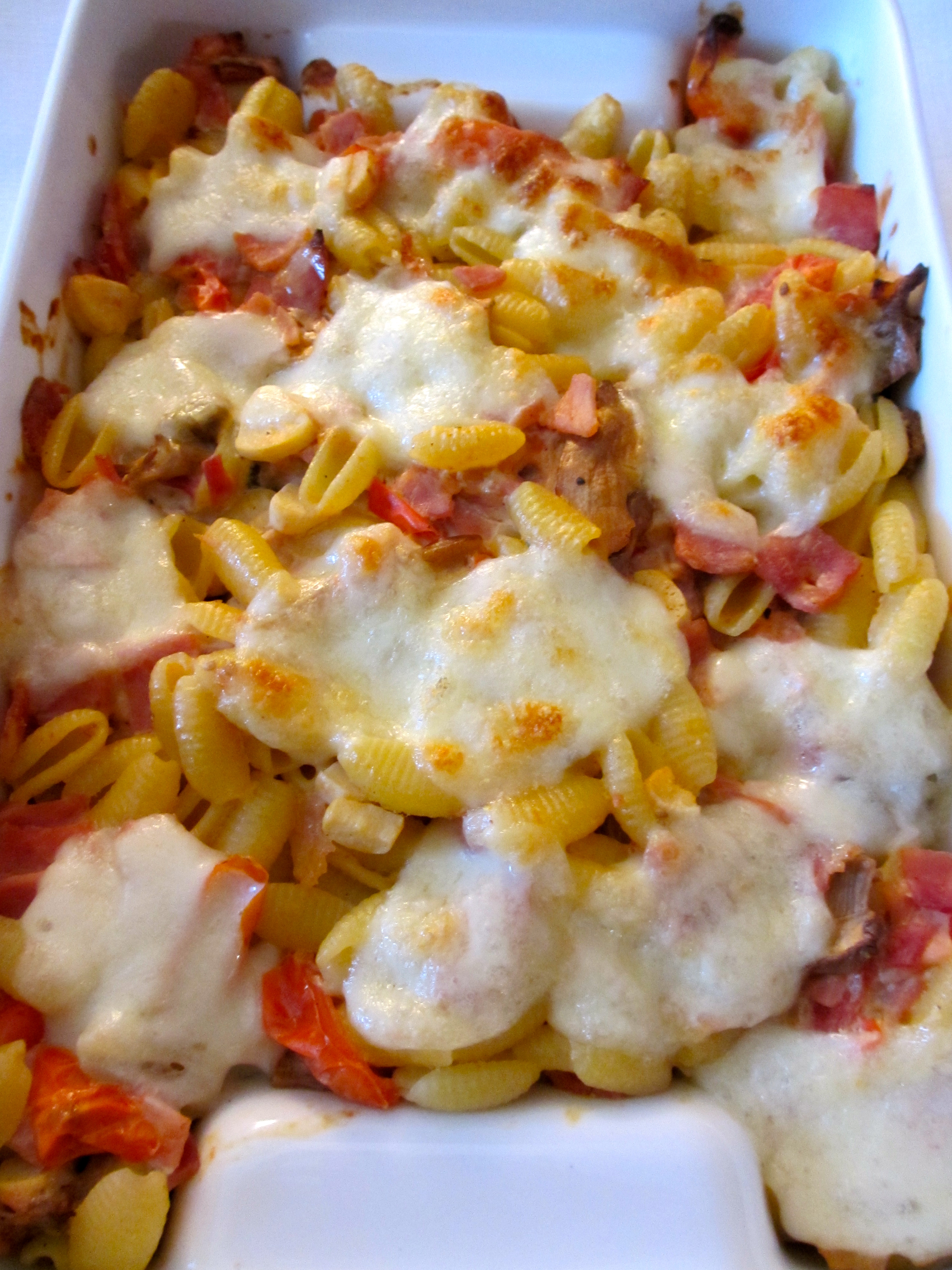 - gratin de pâtes à la purée de tomate et au jambon blanc