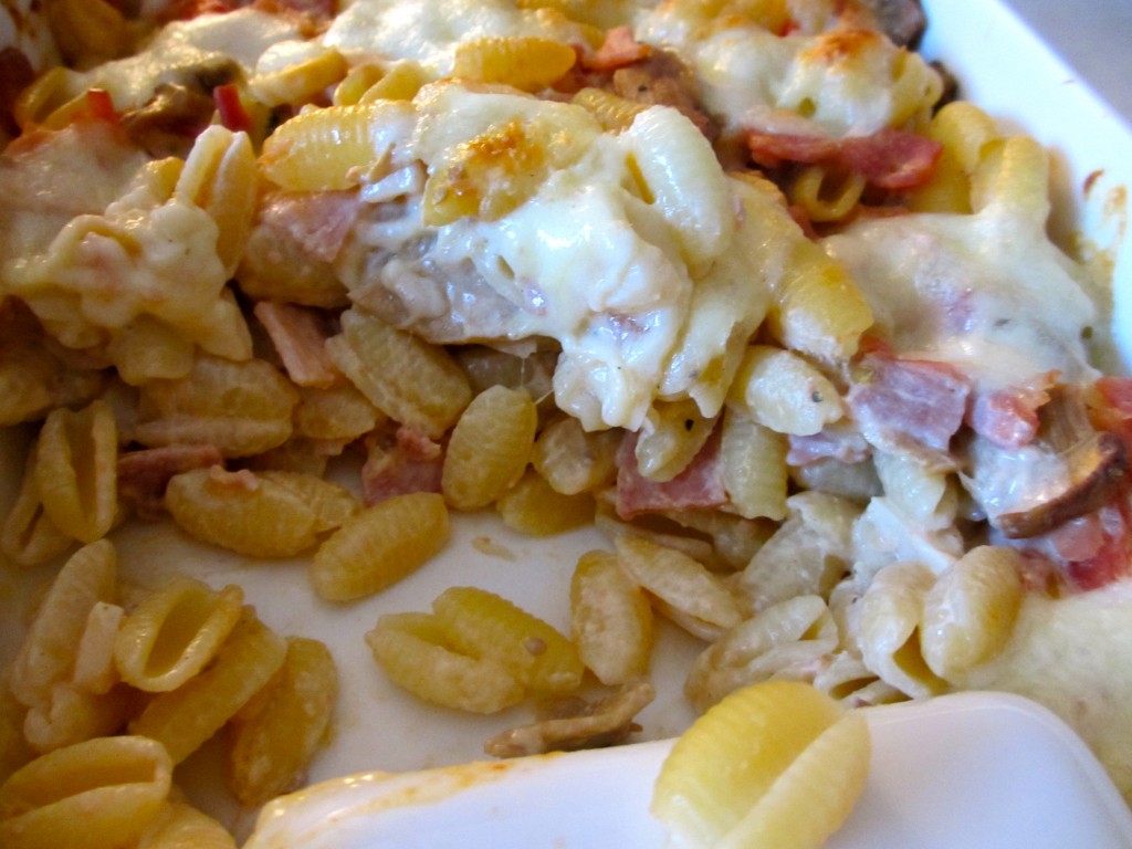 - gratin de macaronis aux champignons et jambon blanc