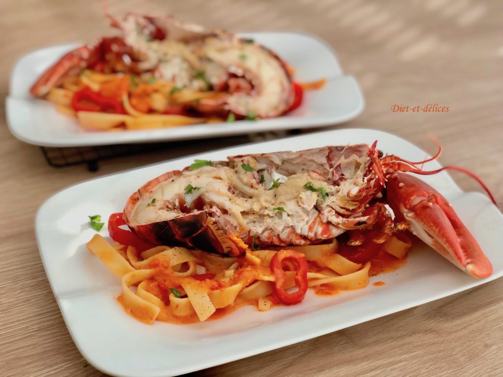 Voilà une recette de homard aux pâtes qui m’a l’air bien appétissante. La chair tendre et moelleuse du homard est un vrai délice.