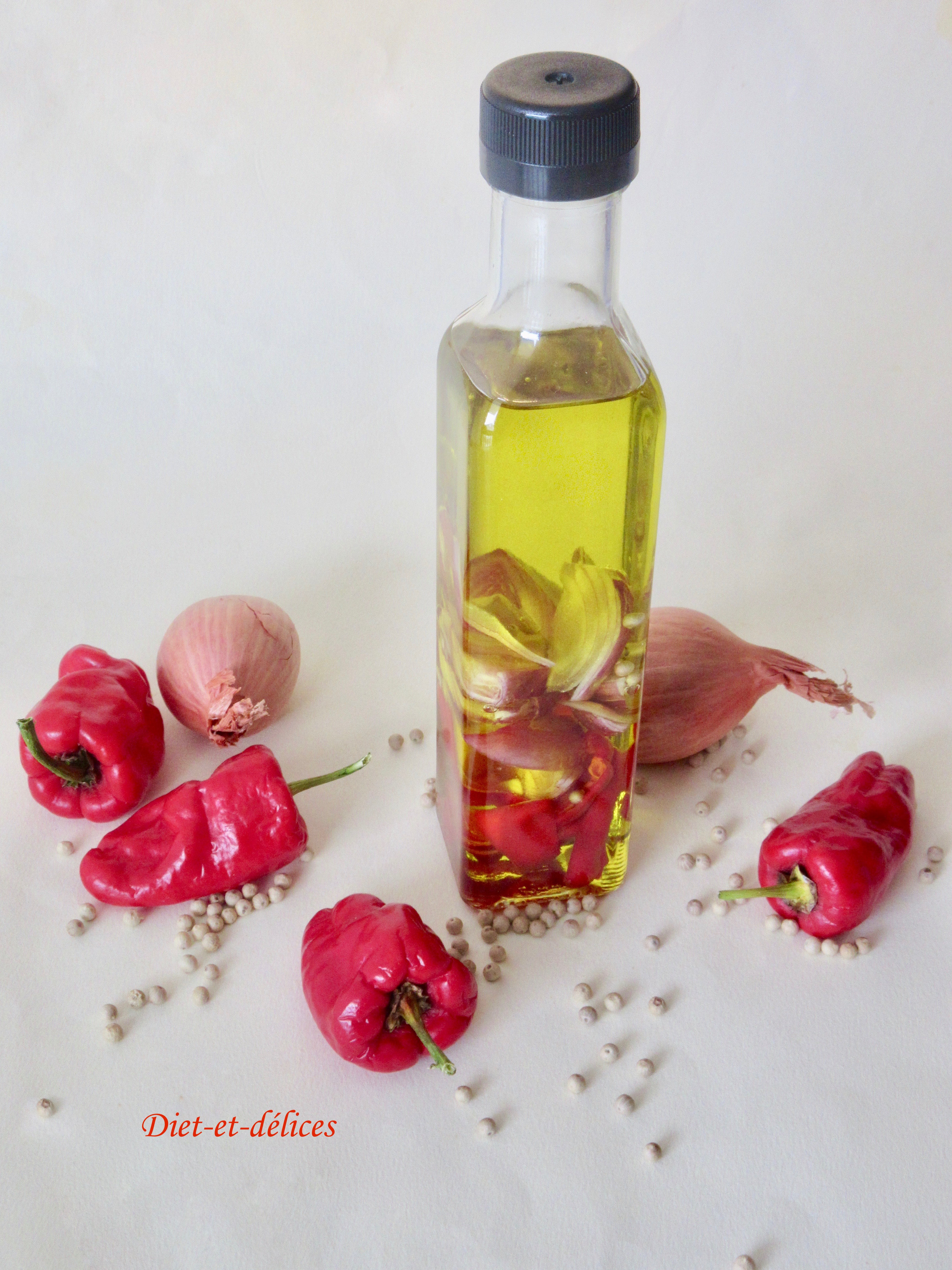 huile d’olive, huile parfumée, huile aromatisée, piment, échalote, poivre blanc