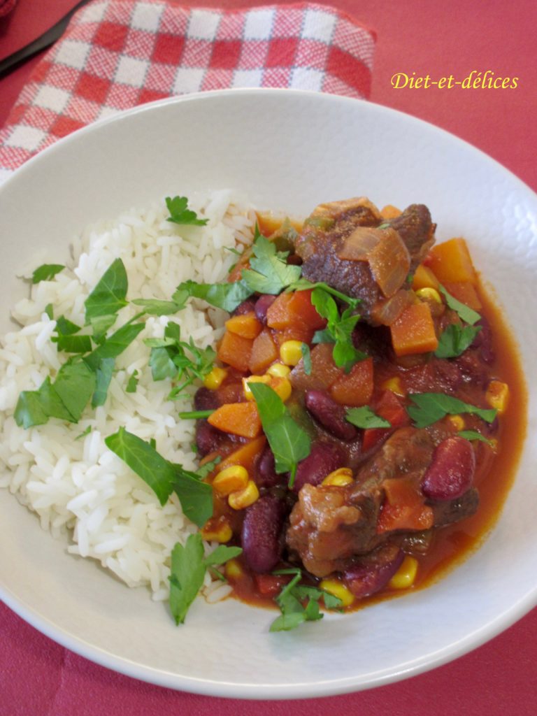 - Egoutter et rincer le maïs en conserve. Le rajouter dans la cocotte puis terminer la cuisson pendant encore 5 minutes. Rectifier l’assaisonnement si nécessaire puis servir bien chaud, accompagné de riz par exemple.