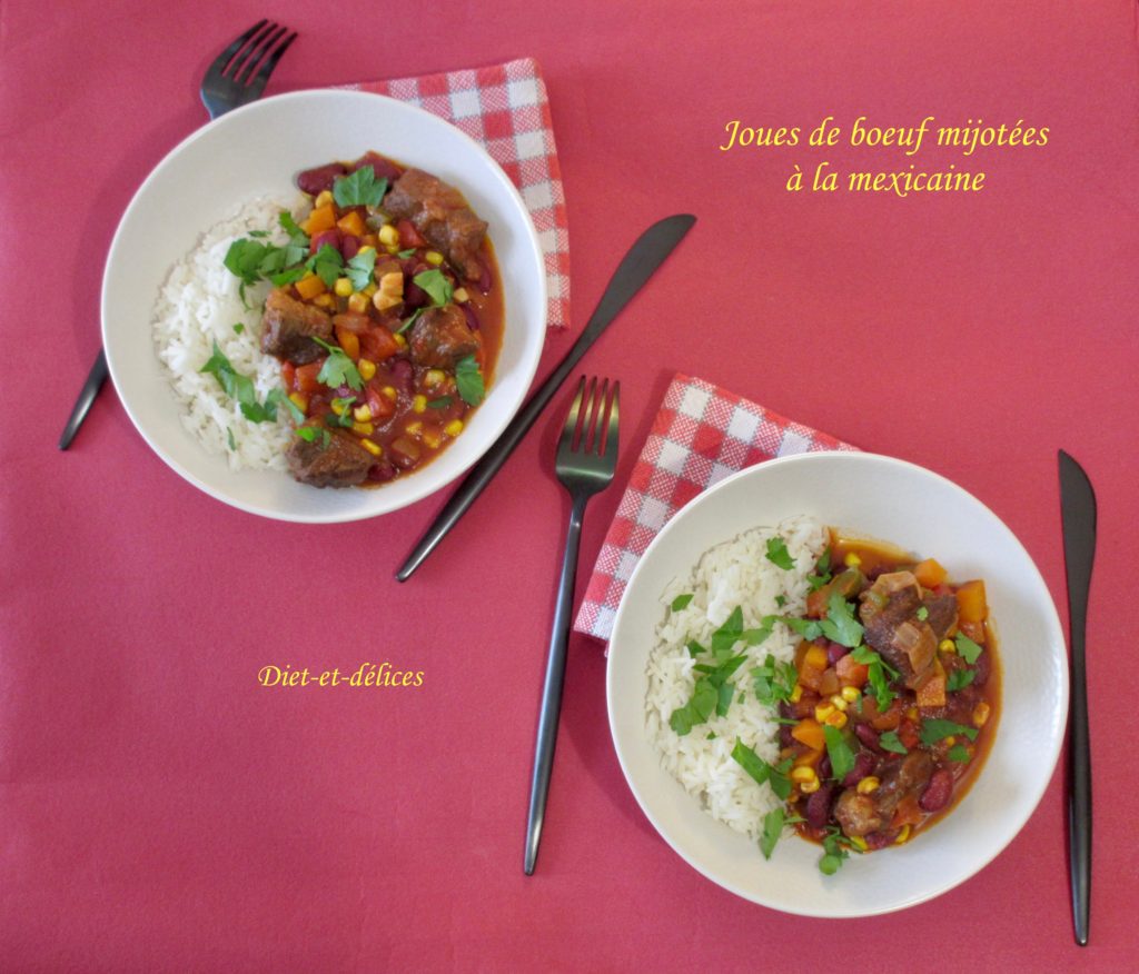 joue de boeuf, cuisine mexicaine , abats , joue de boeuf à la mexicaine, poivron, maïs, haricots rouges, pulpe de tomates, plat complet