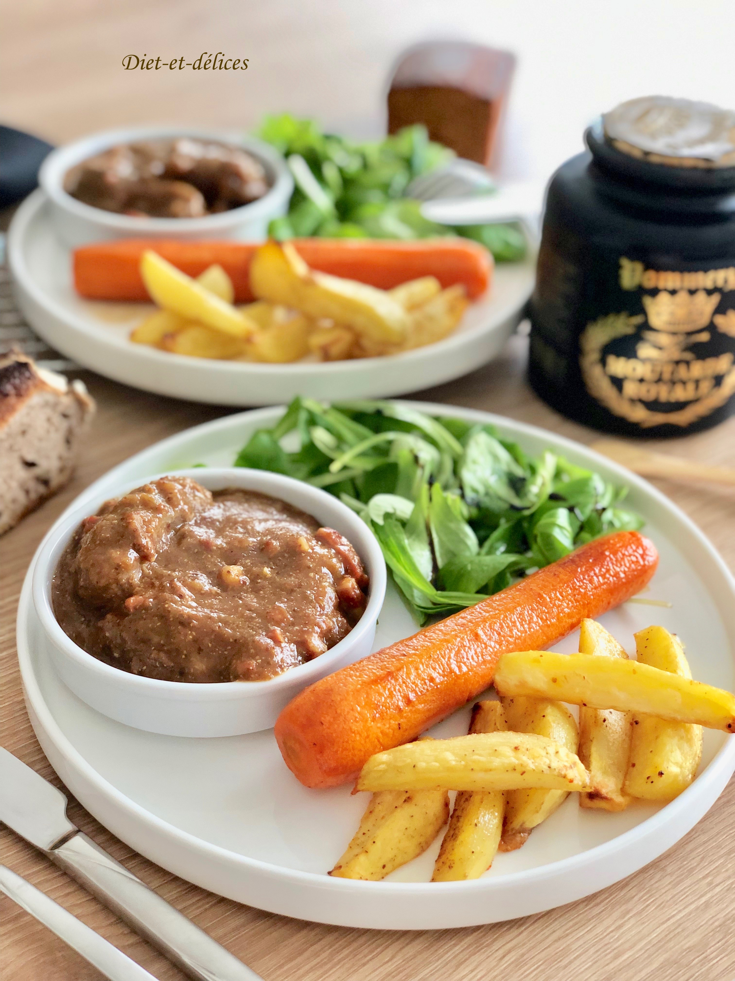 joues, joues de porc, carbonade, bière, joues de porc façon carbonade, lard, pain d’épices, moutarde, plat en sauce
