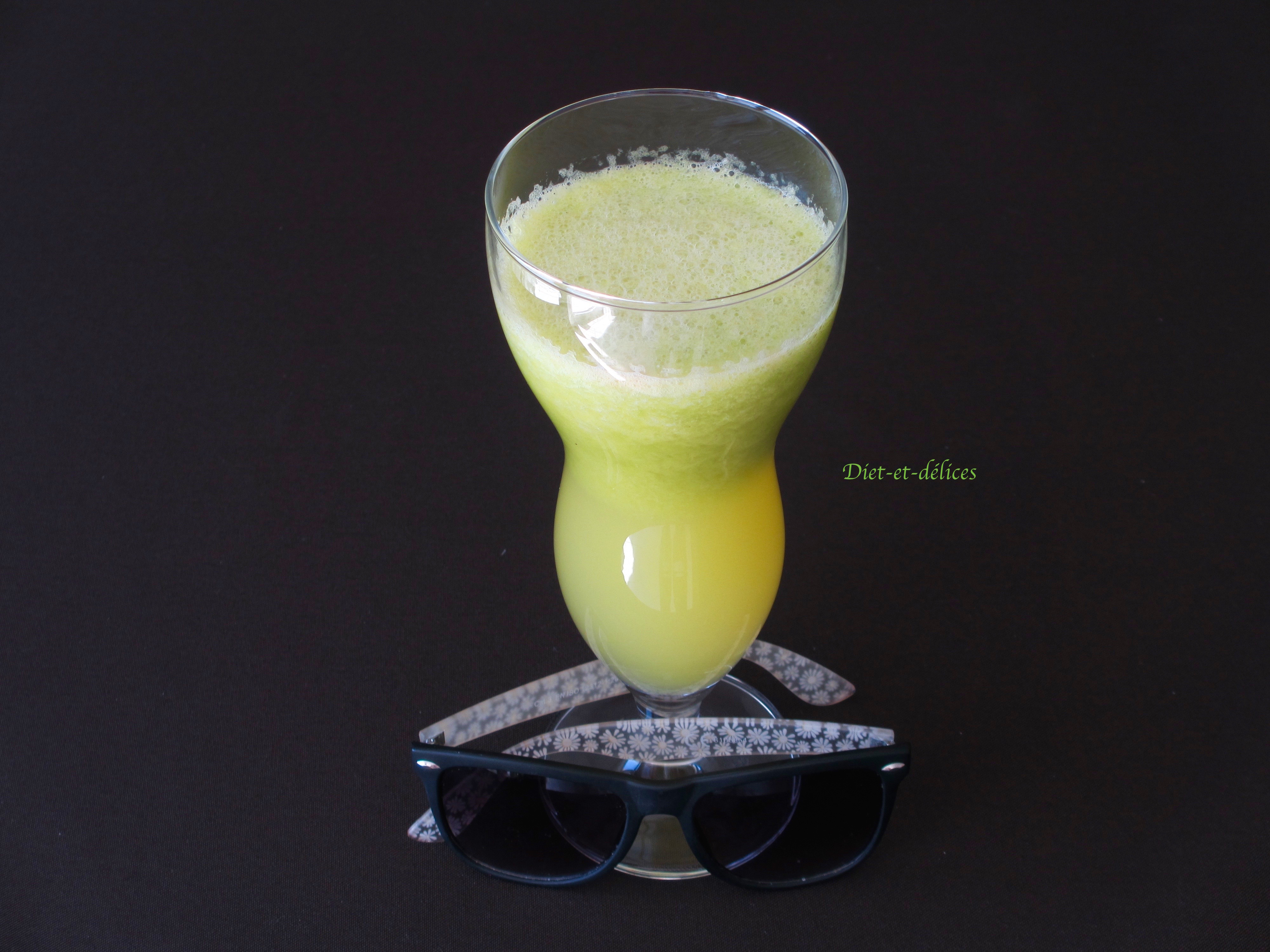 Voilà une boisson dynamique , énergisante , d’une couleur fraîcheur, et , présentée dans un joli verre à cocktail , me plait beaucoup ……