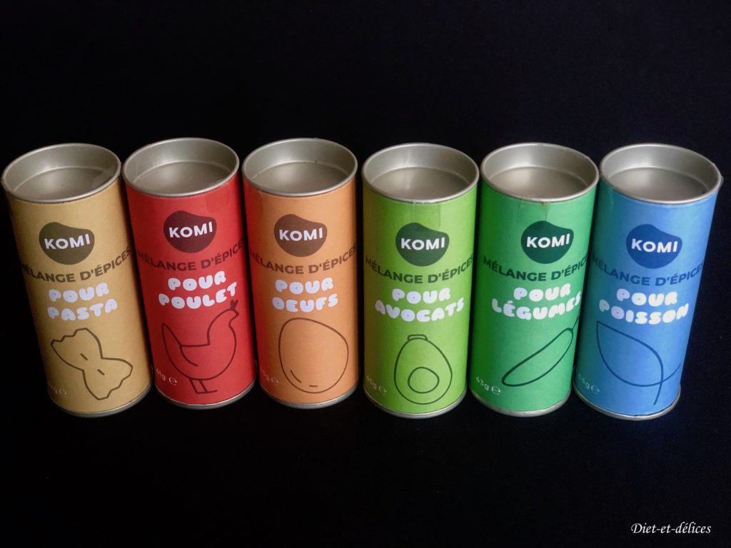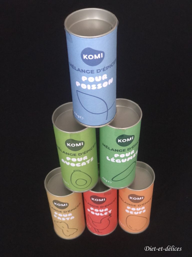 Komi épices propose des mélanges d’épices bio conçus en France, pour une cuisine de caractère. Produits naturels, ces mélanges d’épices ne contiennent aucun additif et ingrédients au nom bizarre ! Chez Komi, ils prônent une cuisine sans complexe et vraiment sans prise de tête, afin d’obtenir une cuisine d’amateur, rapide et qui a du goût. Six mélanges sont proposés :