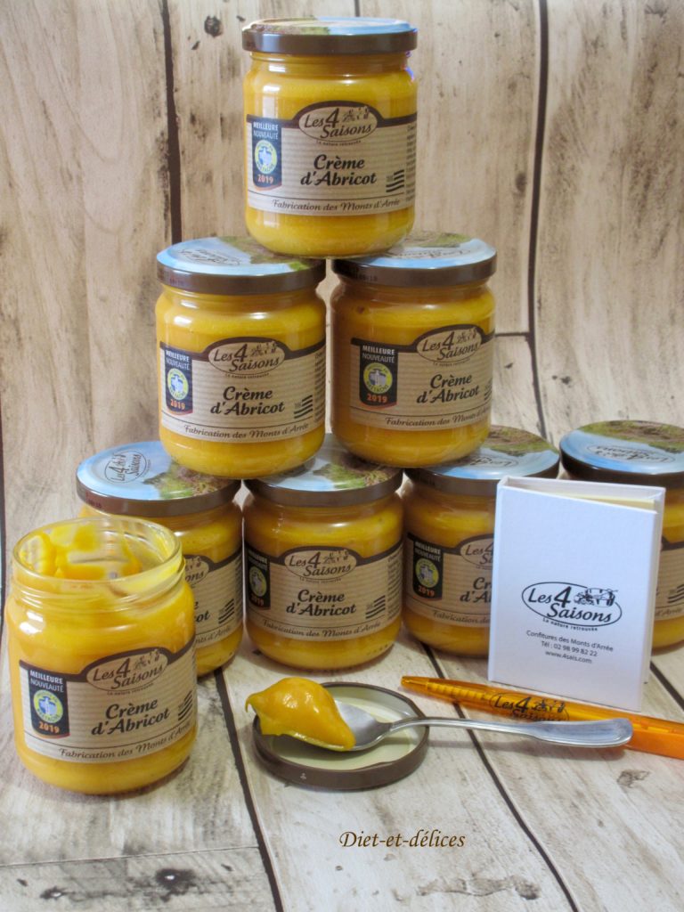 La création de cette crème d’abricot vient d’une ancienne création de chez Les 4 saisons. En effet, elle s’inspire d’une crème de citron à la bretonne, créé en 2012. Cette crème, vendue en pot de 220g, a reçu le prix de la Meilleure nouveauté 2019 par l’association Produit en Bretagne.
