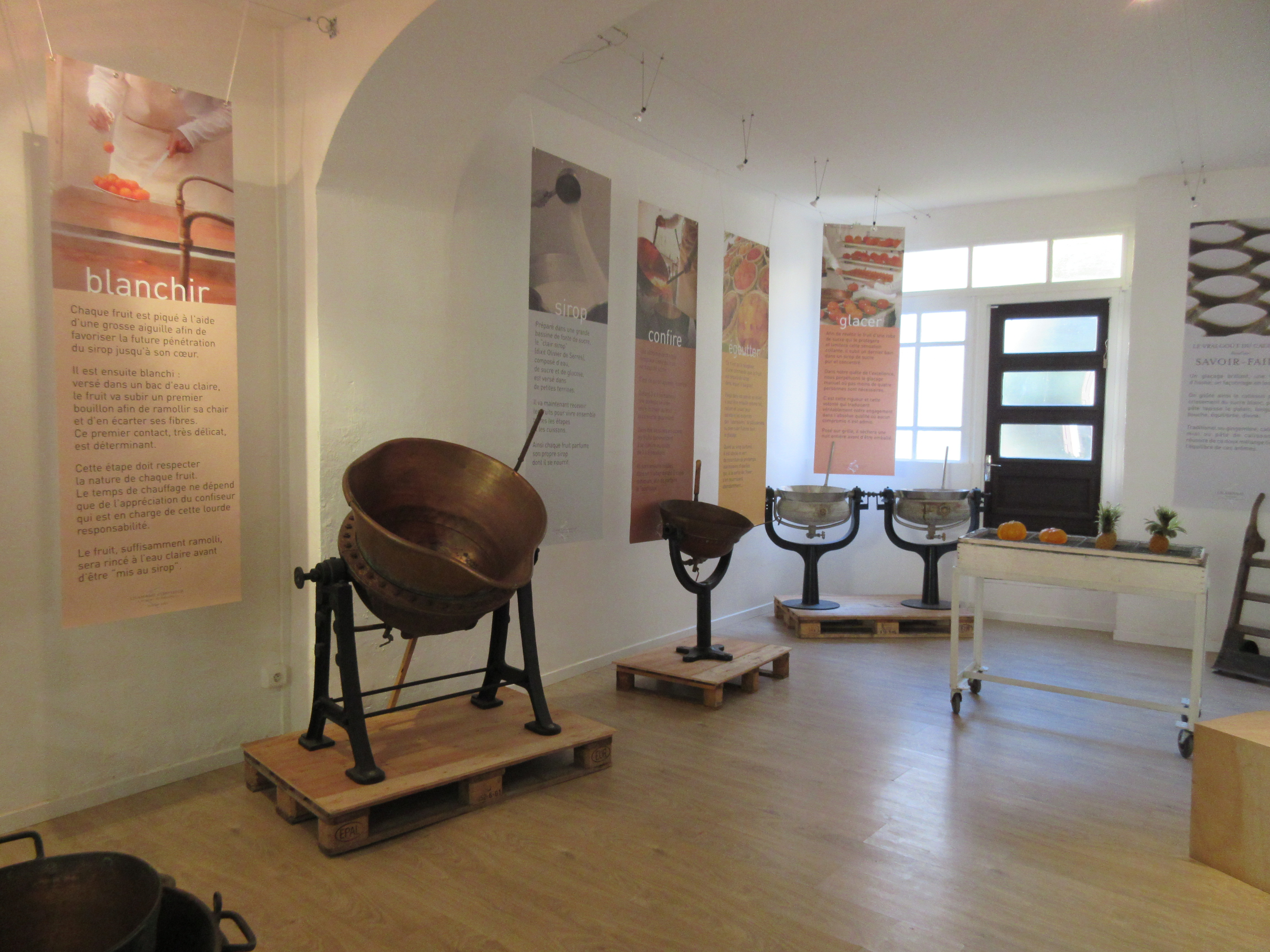 Les secrets du confisage permettent de donner aux fruits confits des arômes intenses et une souplesse. La technique consiste à remplacer l’eau du fruit par un sirop de sucre, le confire. Cette technique nécessite 3 à 4 semaines dans des bouillons successifs puis deux mois minimum dans un fruitier le parfaire les fruits confits. Ce procédé permet de donner tout le moelleux aux fruits.