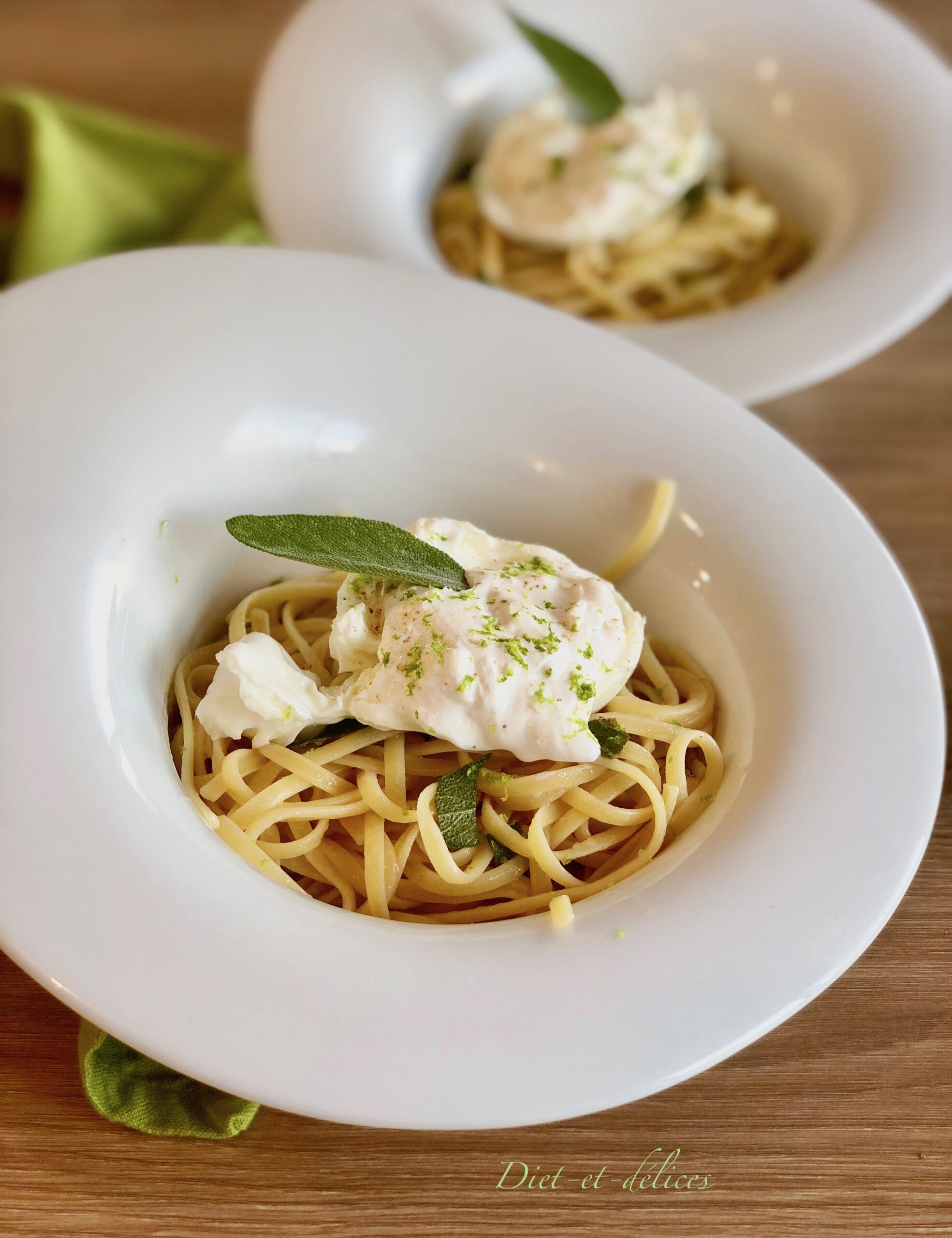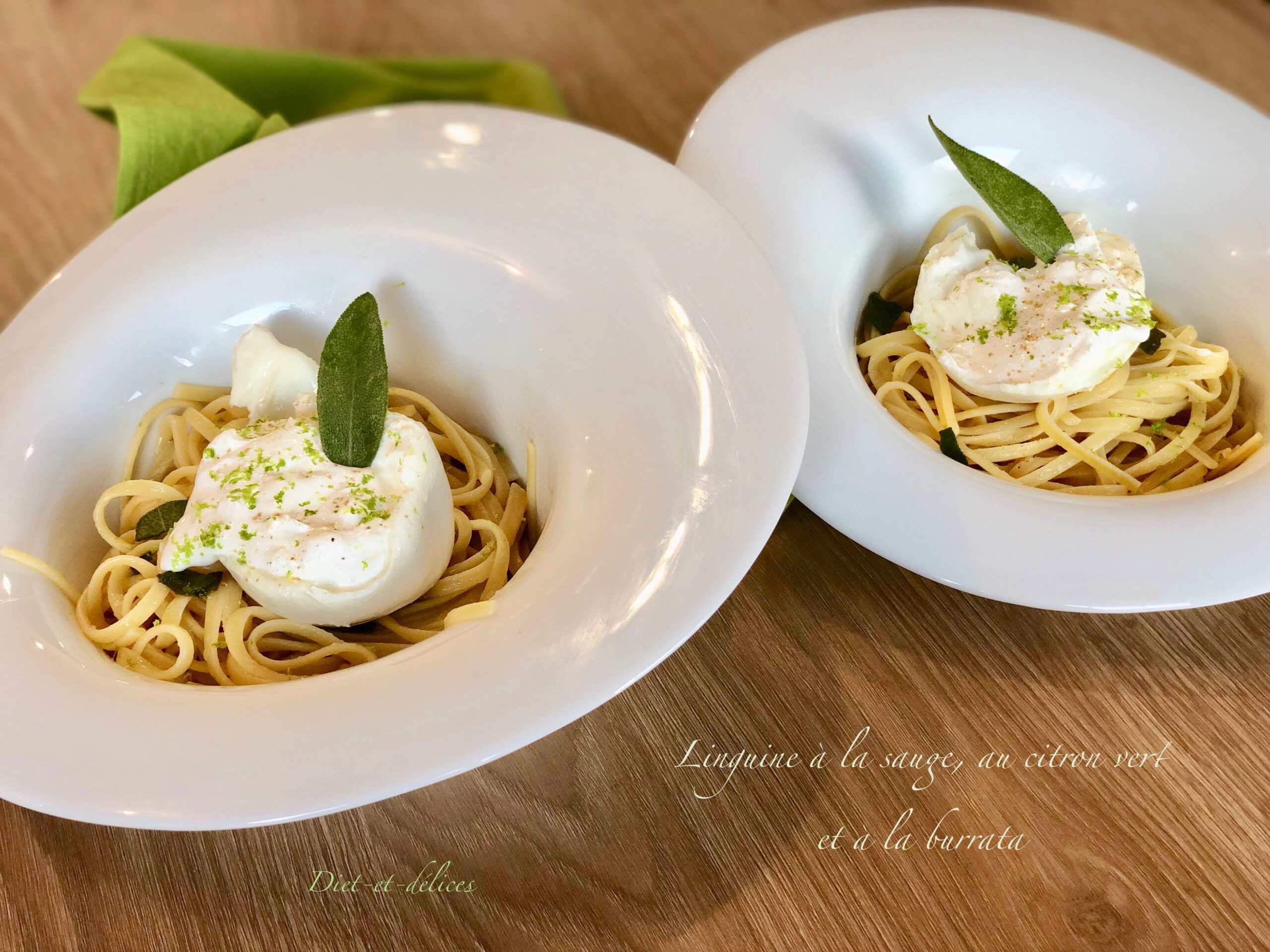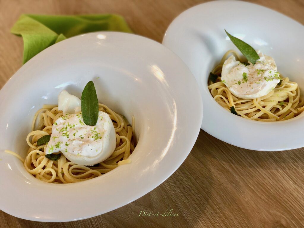linguine, pâtes, sauge , linguine à la sauge, burrata, citron vert , végétarien, cuisine italienne