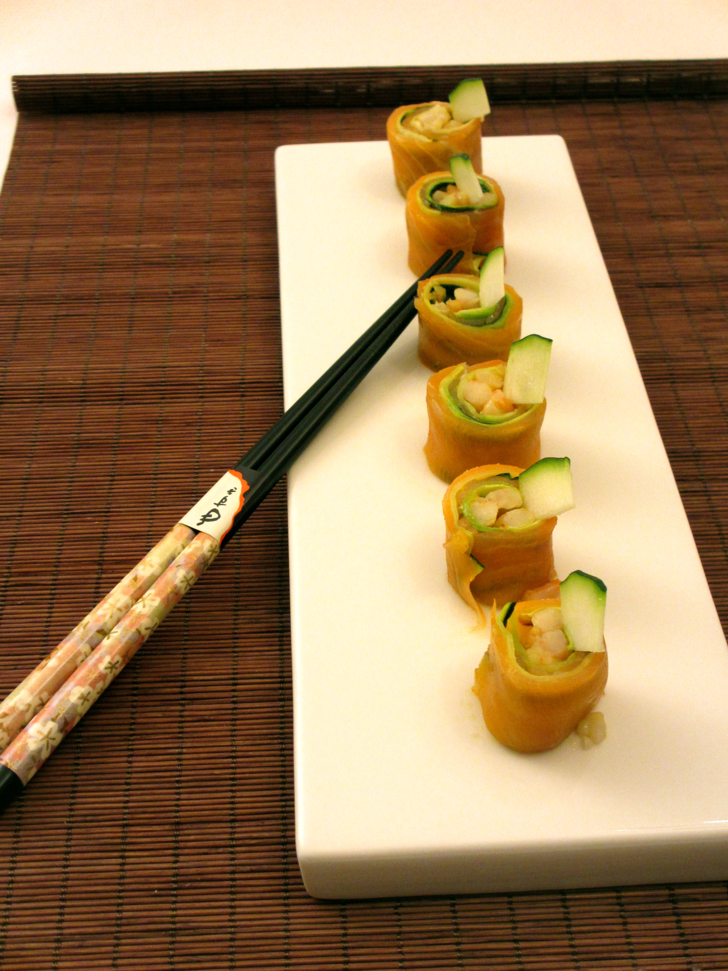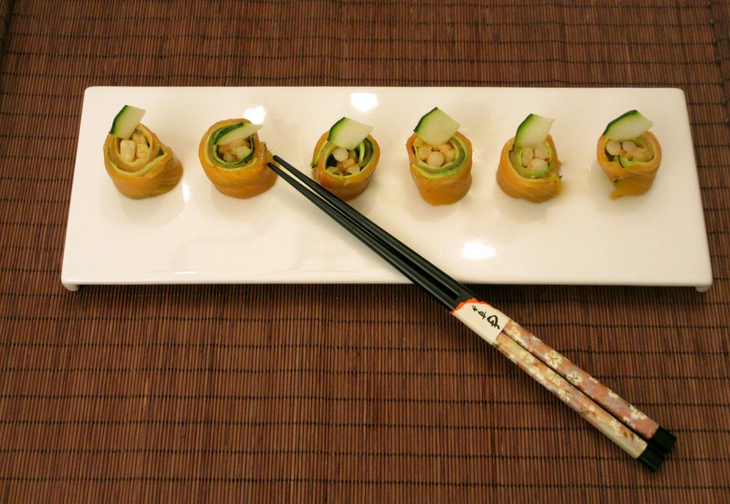 Accueil » Recettes » Amuses bouches » Maki de truite et courgette à la crevette