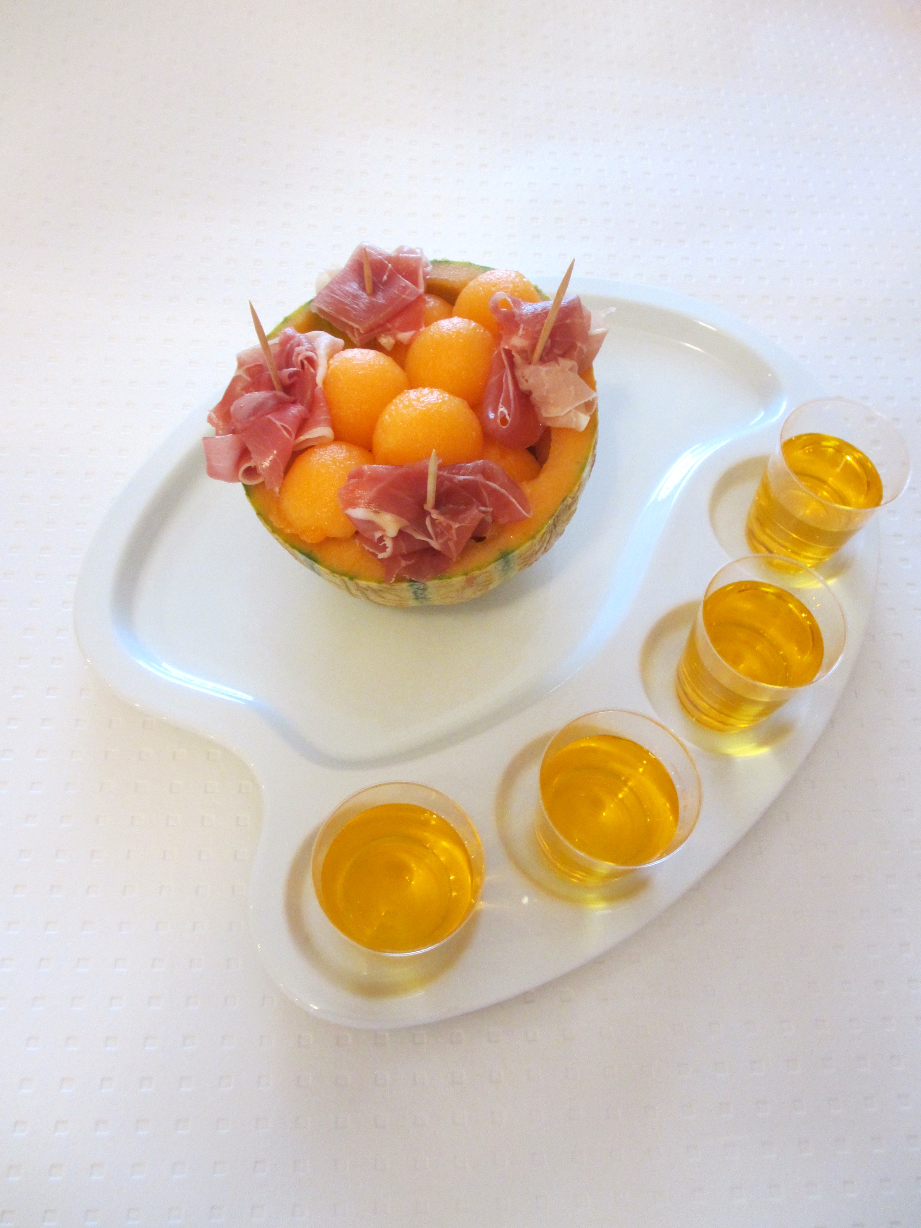 apéritifapéromelon,melon au jambonjambon fuméchiffonnade de jambonmelonadealcool,alcool de melonentrée entrée estivale