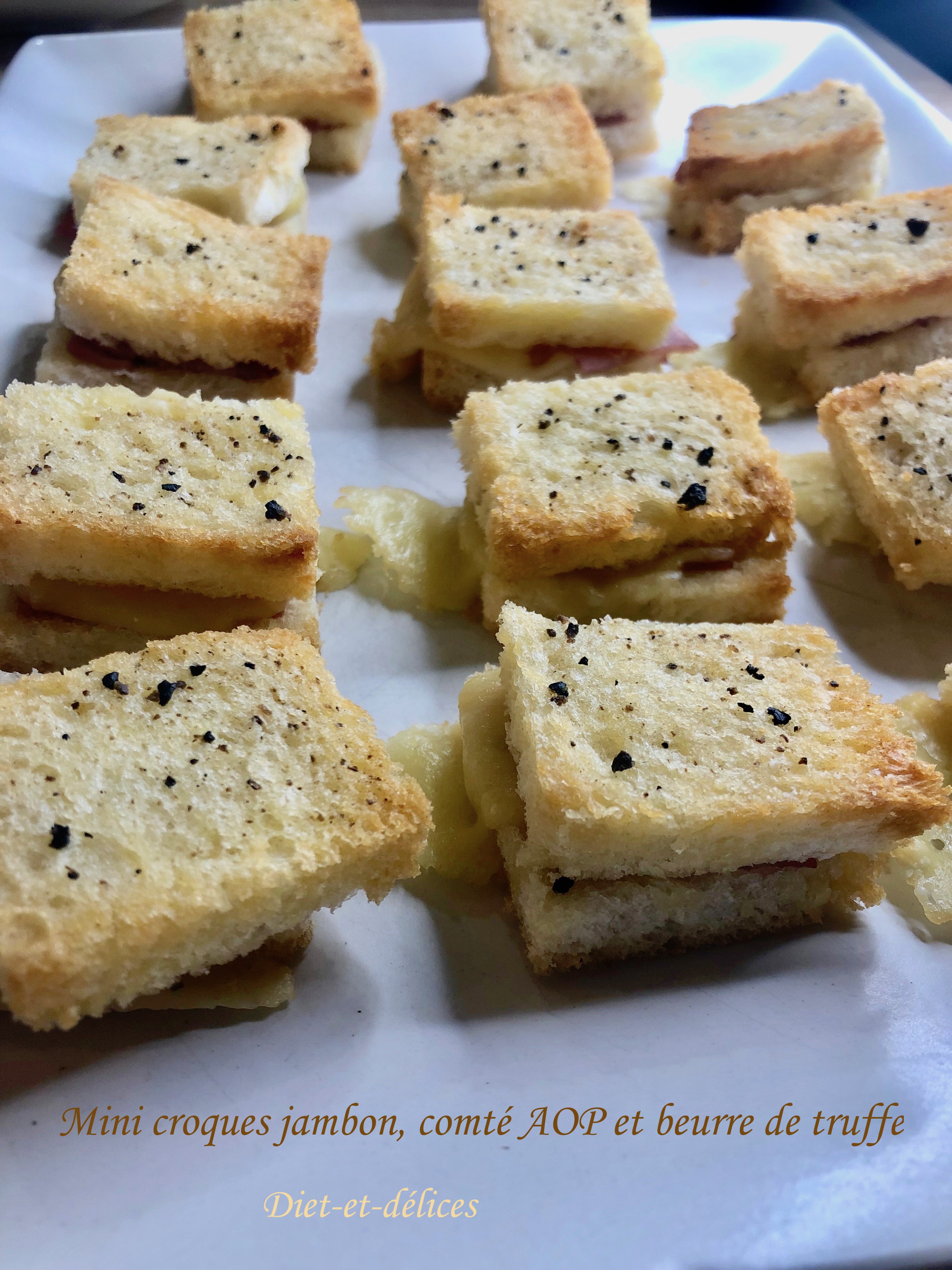 apéro, apéritif, mini croque, jambon, jambon blanc, comté, beurre à la truffe, truffe, apéritif, pain de mie