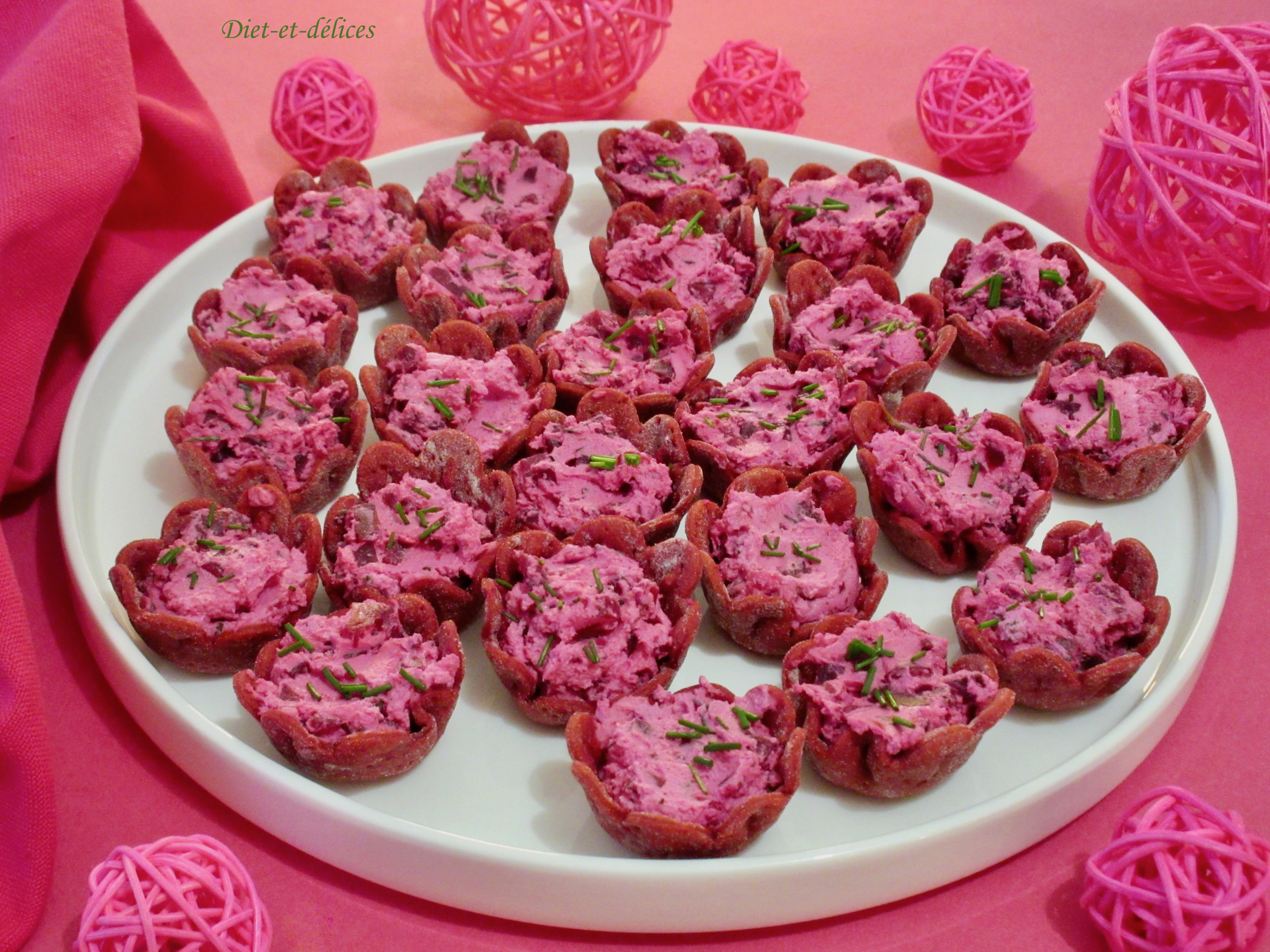 Un apéritif très girly, avec le croustillant des corolles et l’onctuosité du mélange betterave-fromage