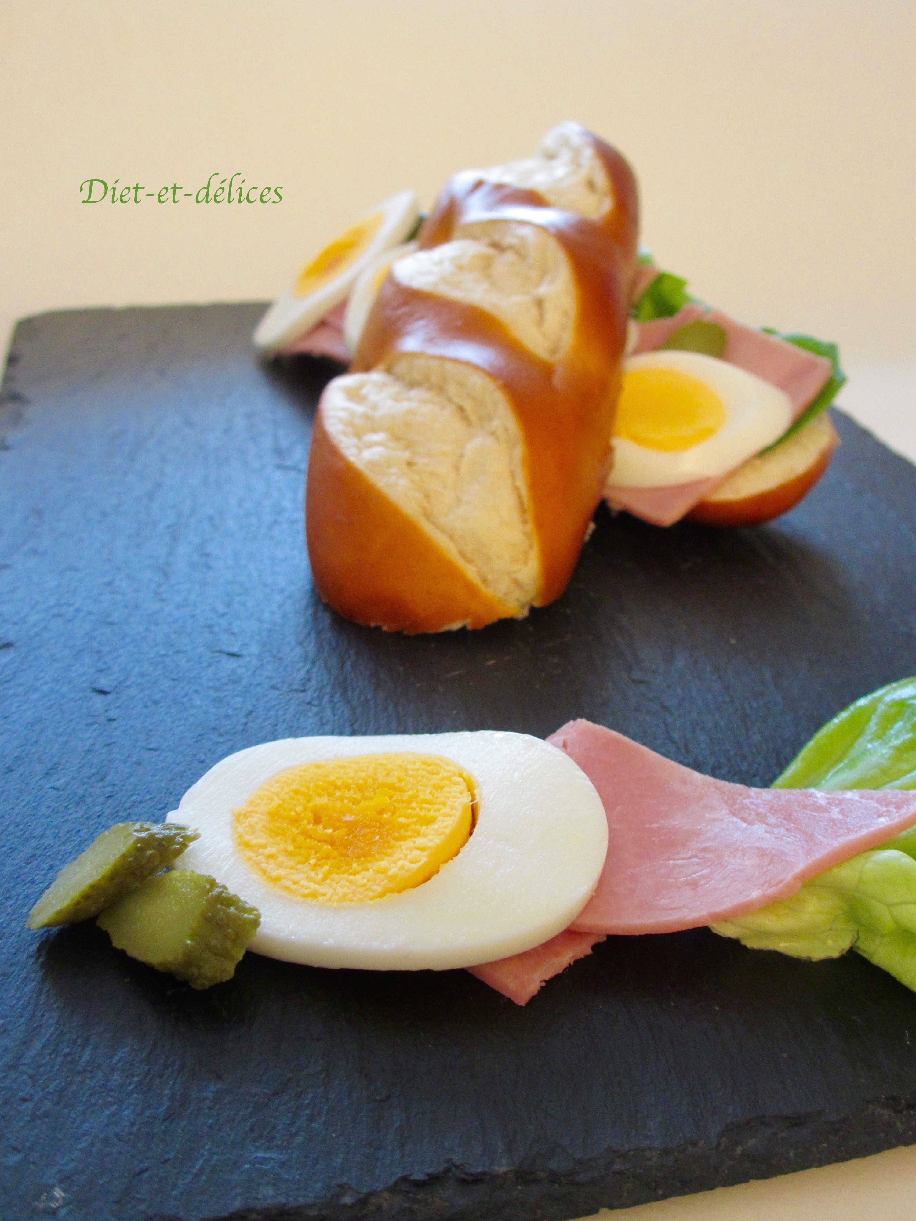 moricettes, jambon, jambon blanc, oeuf, oeuf dur, cornichon, moricettes au jambon, bretzel, sandwich