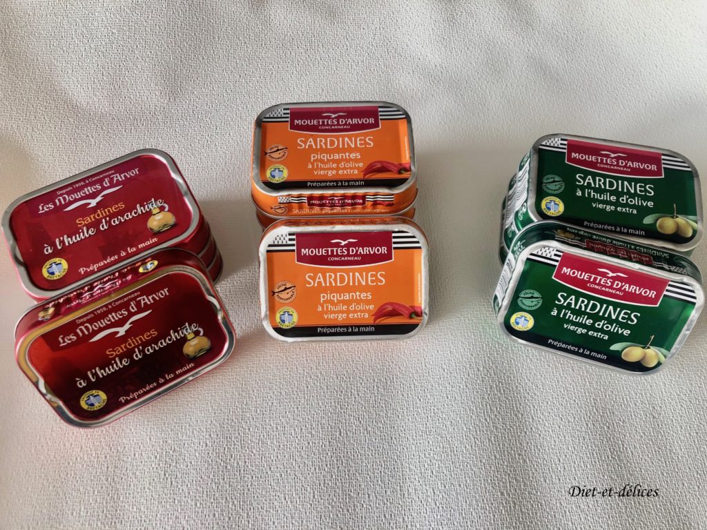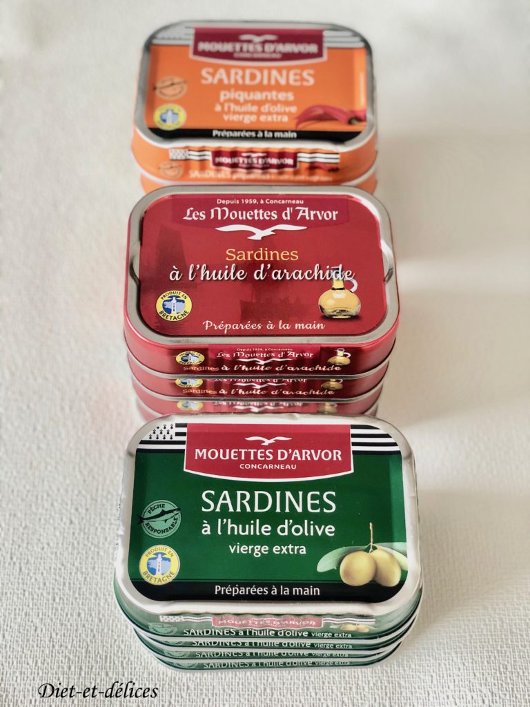 - – des sardines : à l’huile d’arachide, à l’huile d’olive extra vierge, à la tomate et à l’huile d’olive, à l’andalouse, au basilic et au thym, au citron confit et au piment, aux algues bio de bretagne… plus de 40 produits sont proposés !