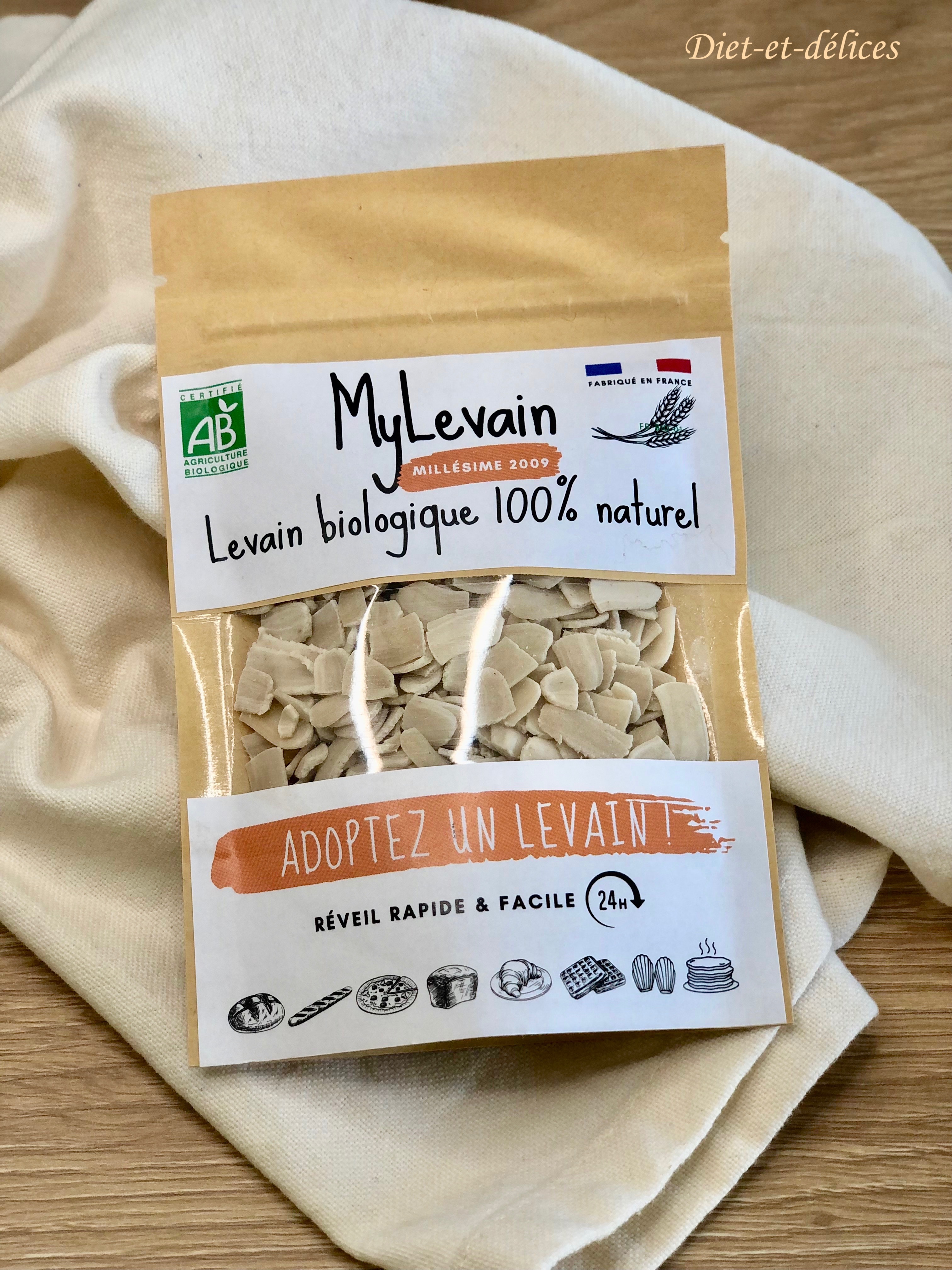 Le concept MyLevain consiste en un produit unique, une véritable innovation technique, et une recette accessible à tous : des paillettes de levain naturel et biologique, prêt à l’emploi, avec un mode d’emploi et des conseils et astuces. Ainsi, My Levain vous propose un levain 100% naturel, 100% bio, qui possède une activité métabolique élevée et offre des performances optimales du fait de son long affinage (depuis 2009). Ce levain se compose de deux familles de levures naturelles et quatre familles de bactéries lactiques (Pediococcus, Leuconostoc, Weissella, Lactococcus). Cette composition si particulière, et surtout sa forte dominance de bactéries lactiques mésophiles, permet non seulement d’avoir un large éventail aromatique dans les recettes de pains, viennoiseries, brioches, gâteaux, etc.. mais aussi et surtout d’apporter des vitamines, nutriments, et probiotiques, renforçant ainsi la santé contre les diverses agressions extérieures.