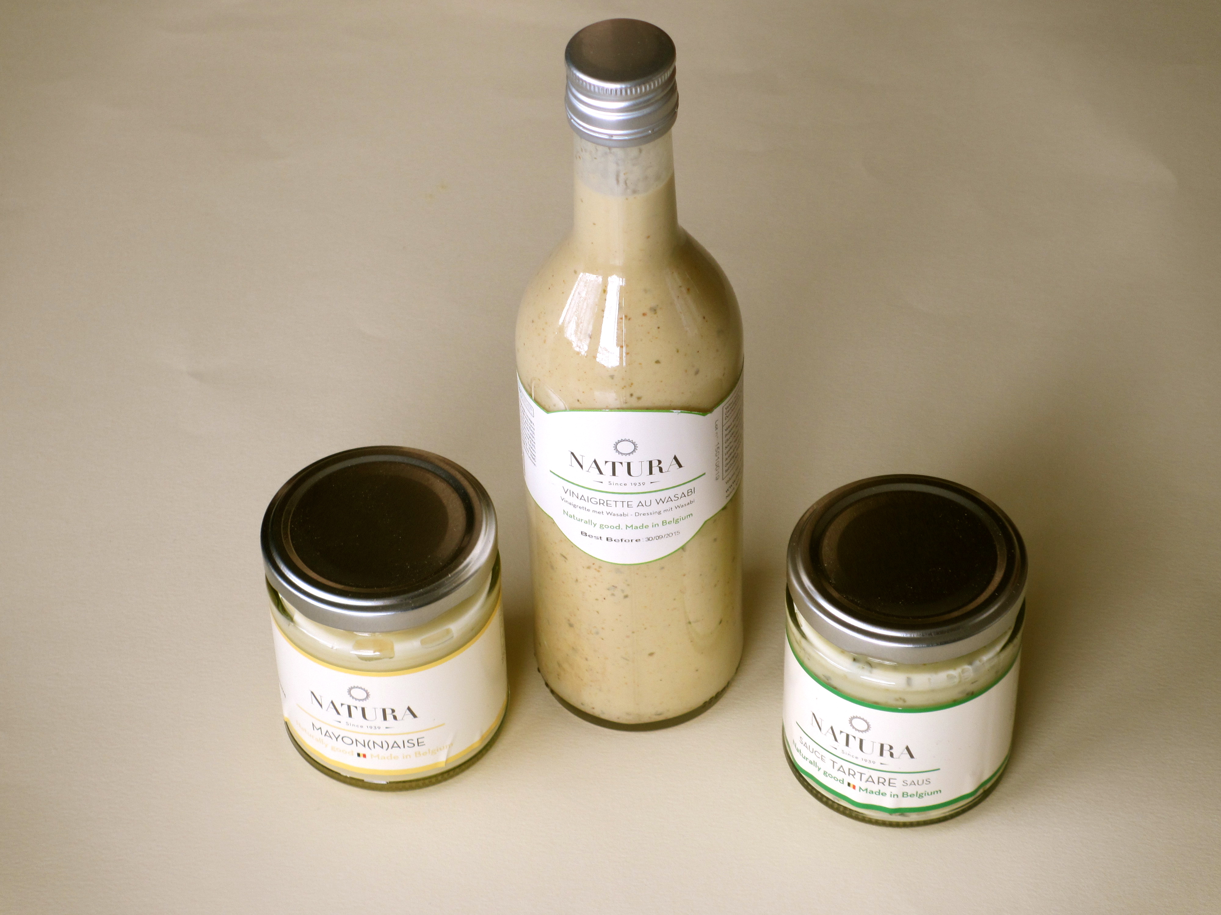 Natura propose également diverses vinaigrettes : césar, au wasabi, au sirop de Liège, au miel, à l’ancienne, de Bruxelles.