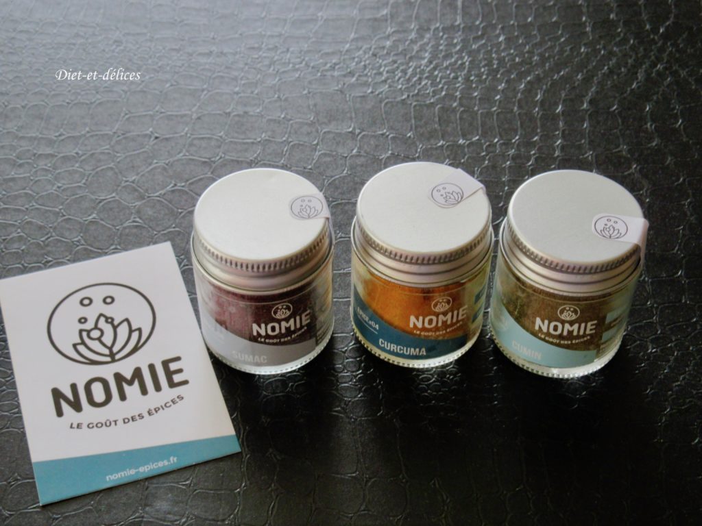 Je remercie grandement mon partenaire Nomie, j’ai eu le plaisir de recevoir du curcuma, du cumin et du sumac pour vous concocter de nouvelles recettes bien parfumées.