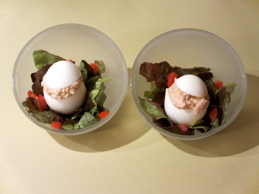 - Remplir généreusement les blancs d’oeufs de cette préparation.