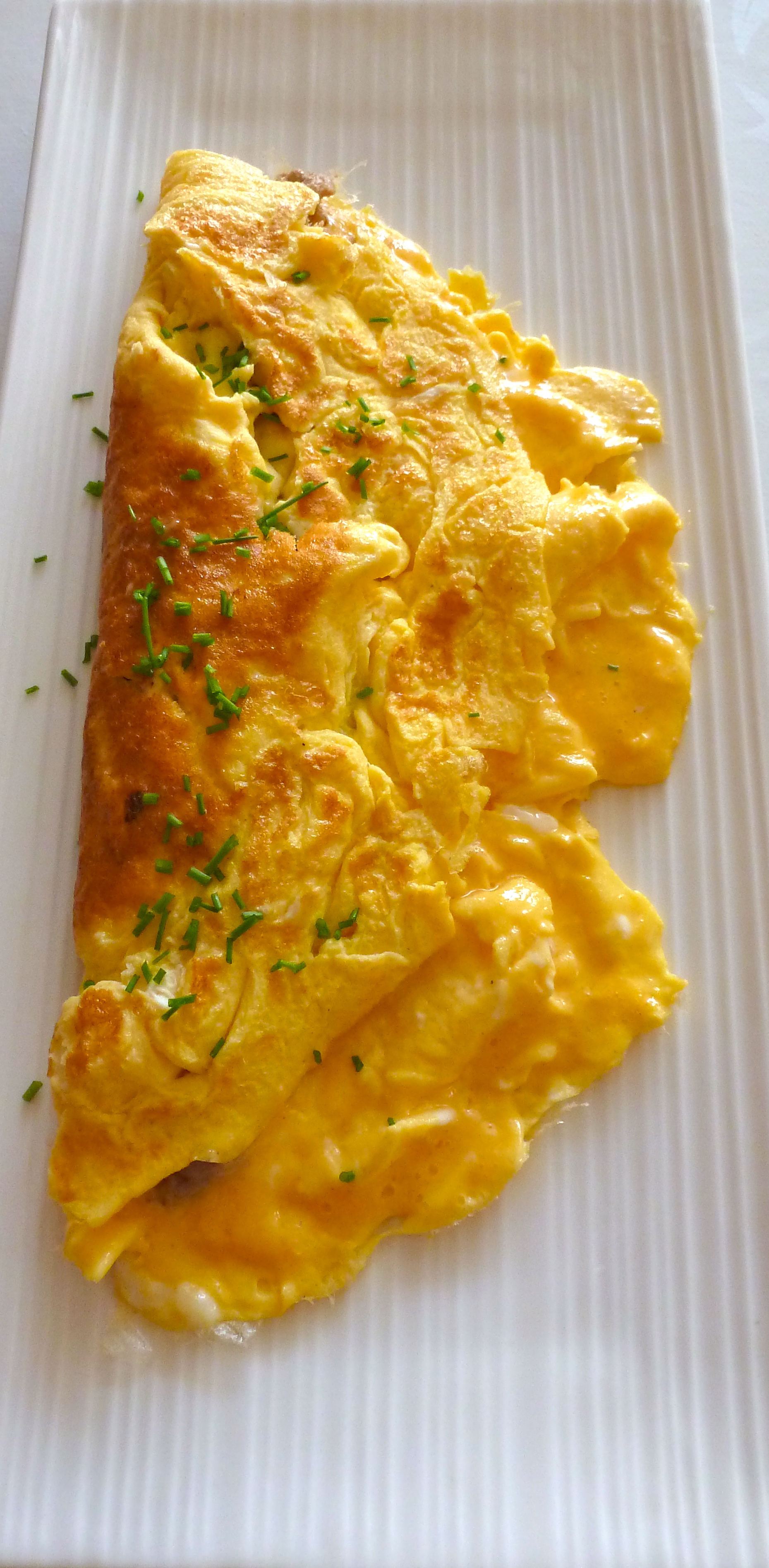 omelette, omelette au thon, thon, poisson, oeufs, thon en conserve hyperprotéiné, ciboulette, échalote